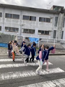 ドキドキとワクワクの気持ちを胸に、みんなで小学校まで歩いて向かいます!
