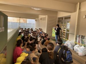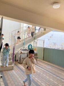 放送が流れると、子どもたちは慌てることなく耳を傾け、先生の話をよく聞きながら落ち着いて避難する姿が見られました。
