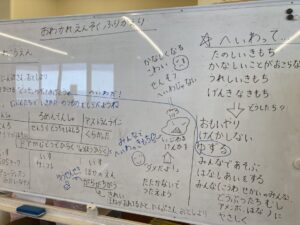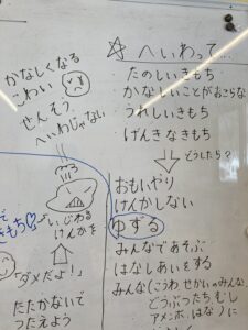 さまざまな気持ちを出し合いながら、「どうしたらみんなが安心して楽しく過ごせるか」を考えてみました。