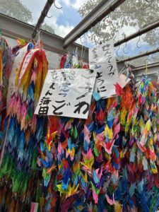 夏から少しずつ、一羽一羽、想いを込めて折り続け、今日、ついに完成した千羽鶴を平和公園へ持って行きました☆☆☆