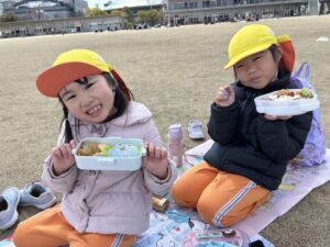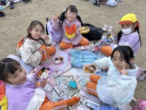 おうちの方が作ってくれたお弁当を嬉しそうに見せ合いながら、笑顔いっぱいの(*^^*)