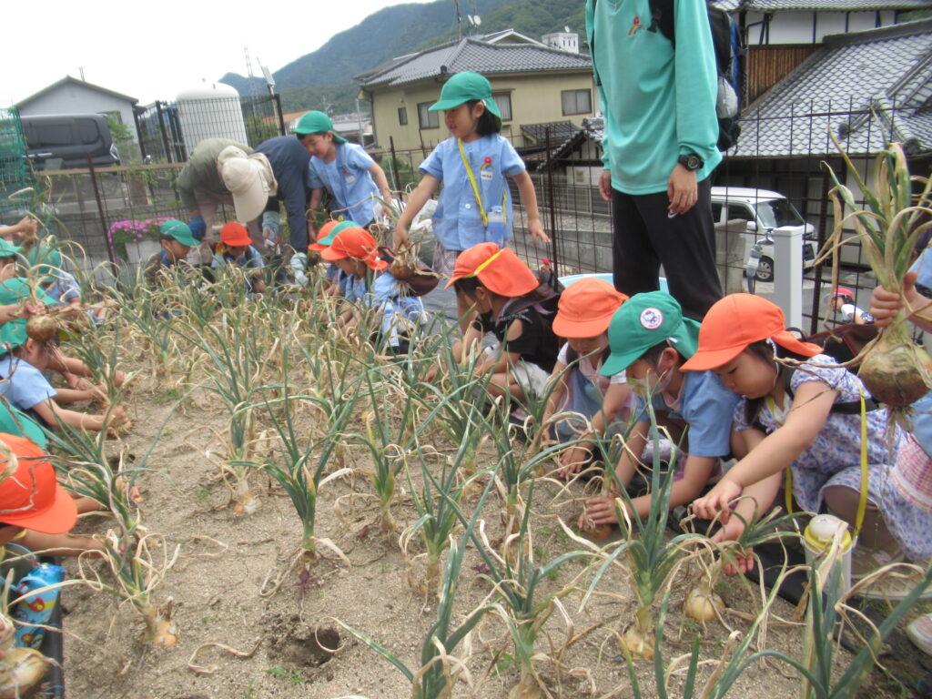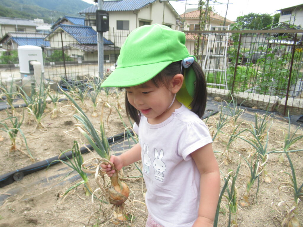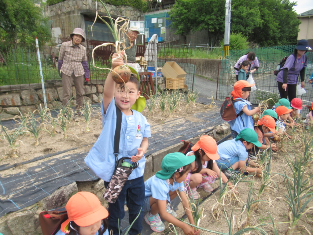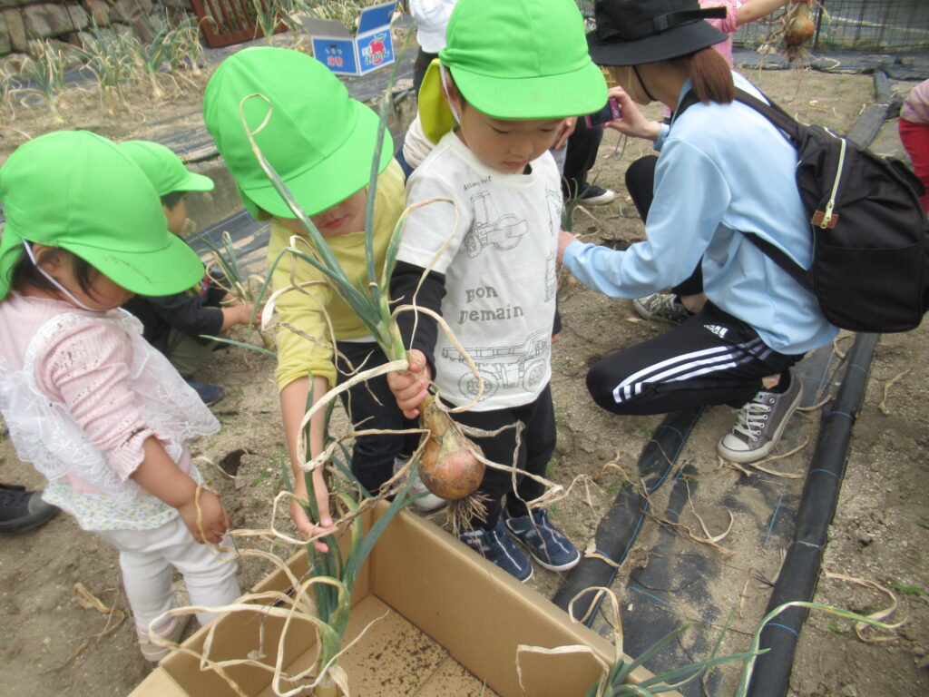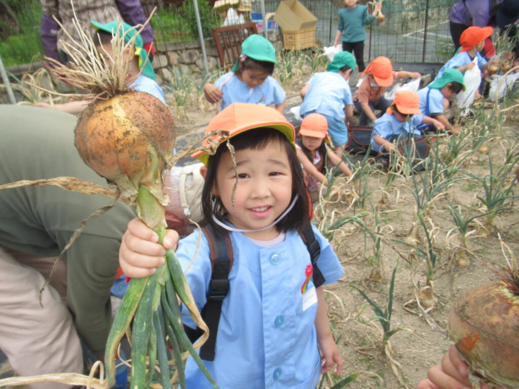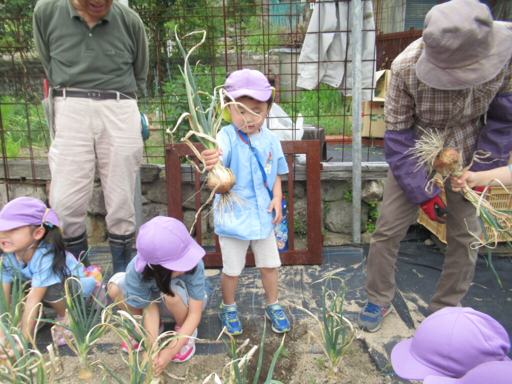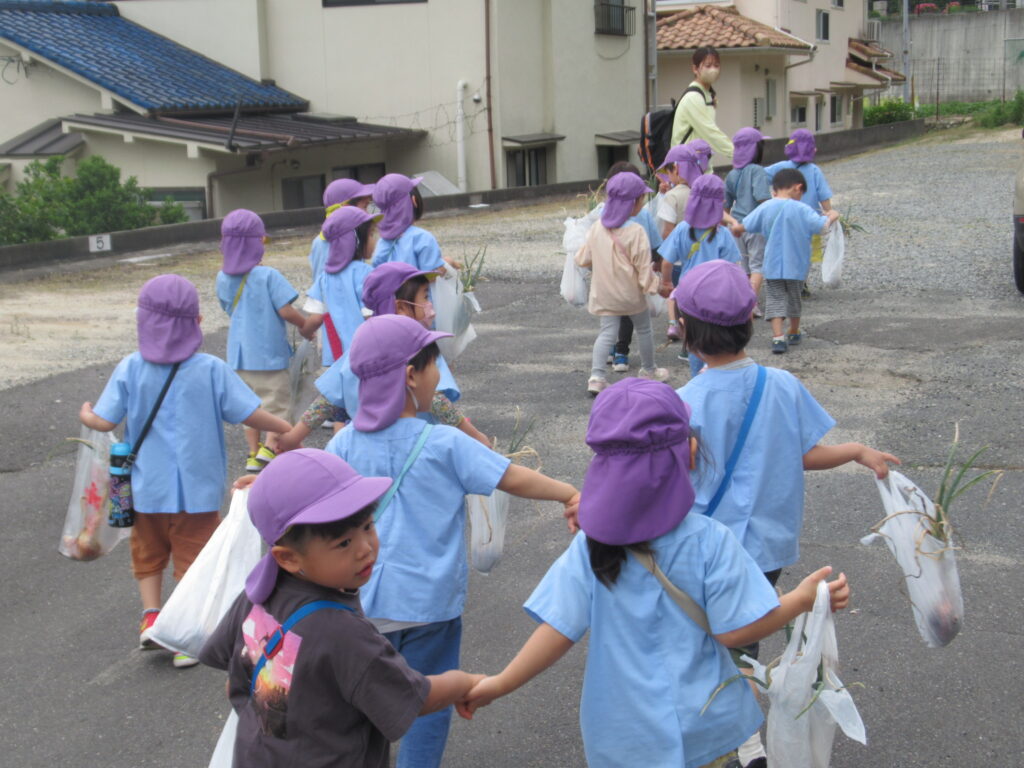 幼児組さんは掘った玉ねぎを大事そうに持ち、お家の人に渡せるね💓とうれしそうに園へ帰っていきました。