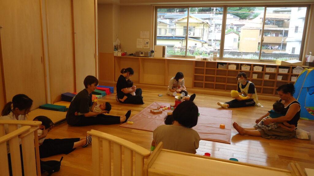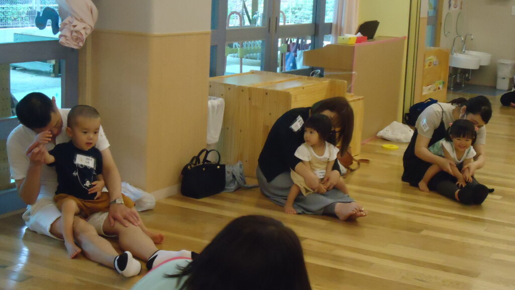 0歳児クラスは「いないいないばぁ」の絵本を読んでもらった後、お家の人のお膝でごろ~んとなり、お歌を歌いながらゆらゆら♪や、なでなでしてもらいとっても、気持ち良さそうでした。(*^_^*)