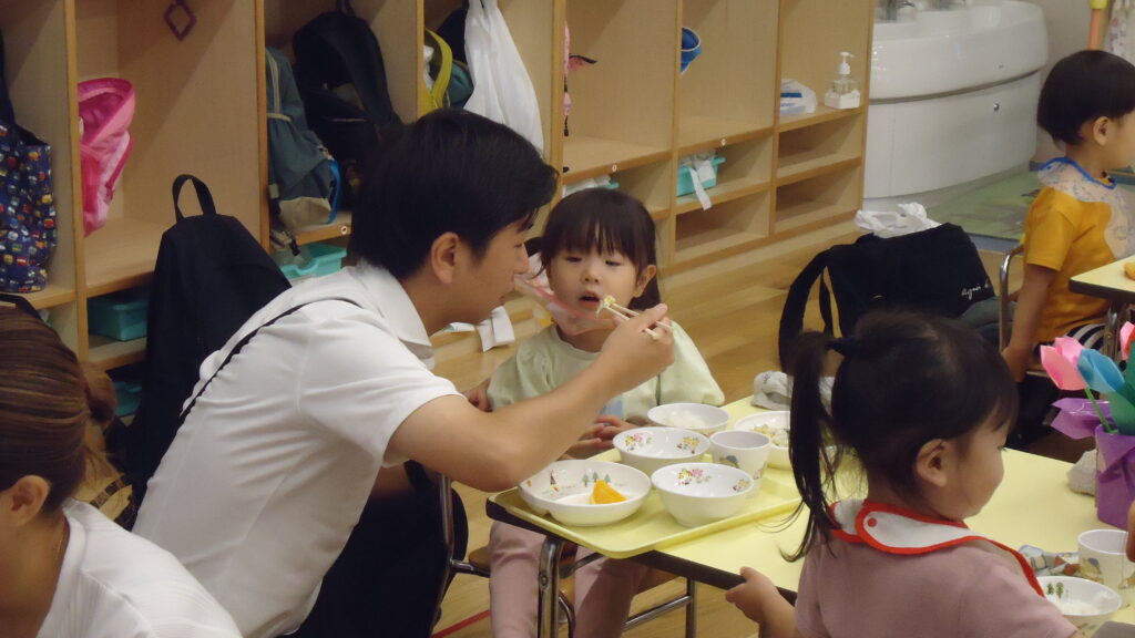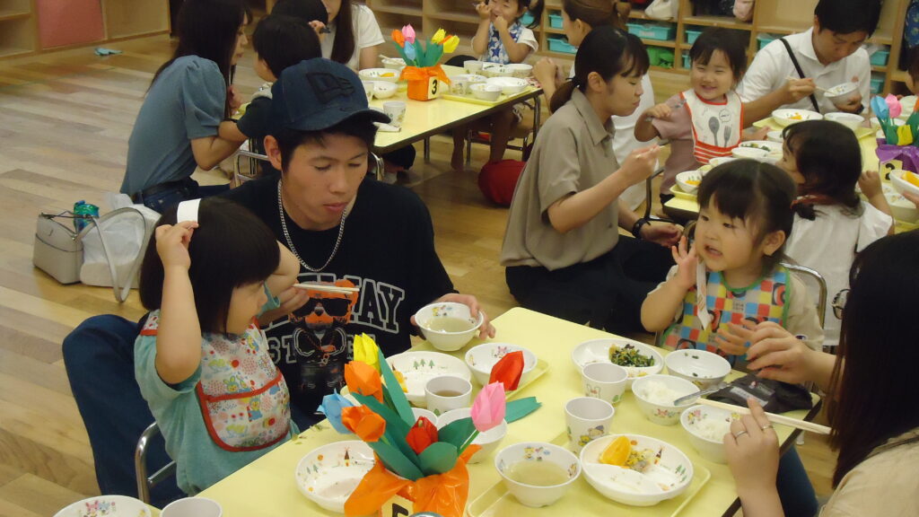 そして最後は待ちに待った給食です!! いつもと違いお家の人と一緒に食べる給食はとってもうれしくて、お汁をお代わりしたり、「あ~ん」と食べさせてもらったり、たくさん、たくさん笑顔が見られた1日でした。