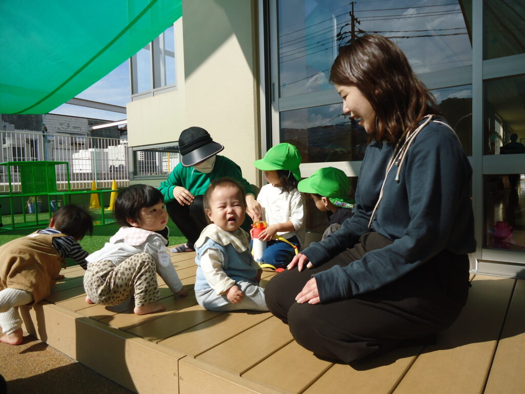いっぱい遊んだあとは・・・・「おつきさま」の絵本をみんなで見ました。おつきさまのお話にしっかり耳を傾けて最後までしっかり見ていましたよ💓