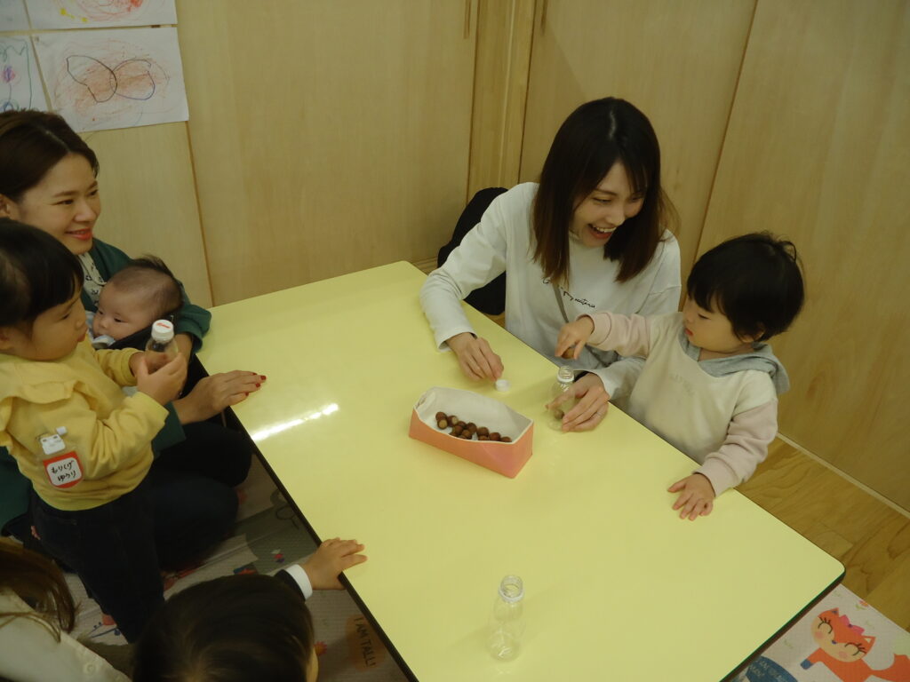 11月21日(火)に予約制園庭開放おひさまくらぶがありました。(*^-^*)今月は秋の自然物に触れながら