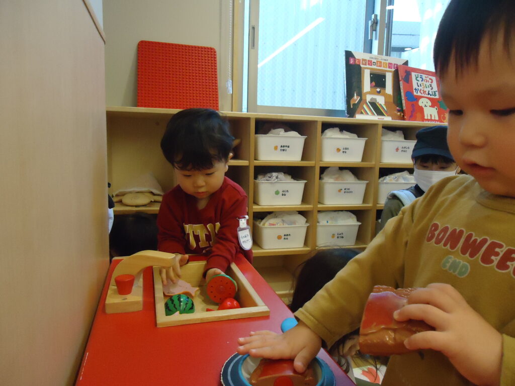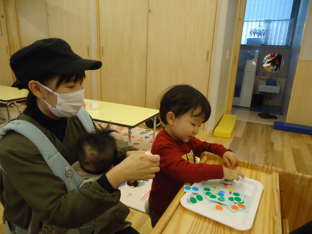 ブロックあそびをするなど、園にあるおもちゃで楽しんでもらいました。