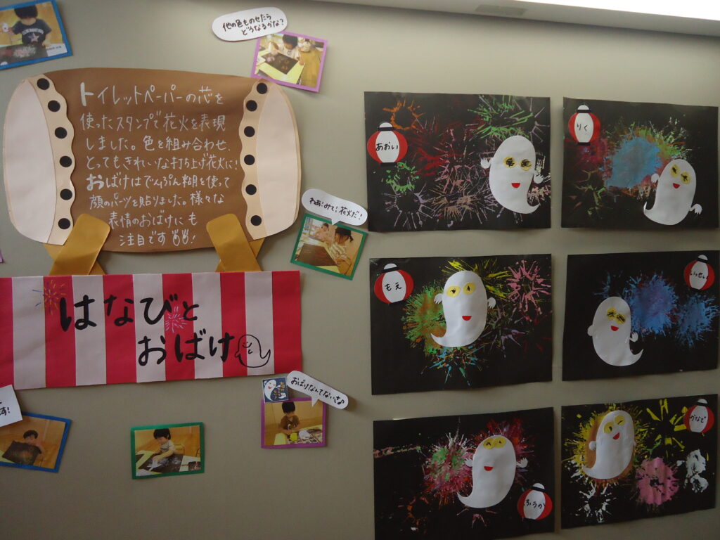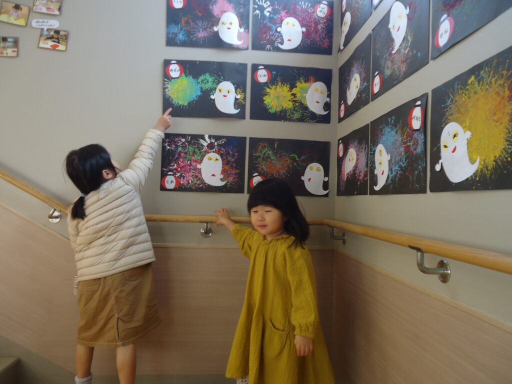 みんなが大好きな絵本「ねないこはだれだ」の題材を元に制作しました。おばけちゃんや夜空の花火がとってもダイナミックで綺麗ですね🎆