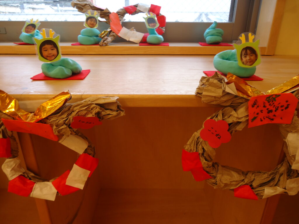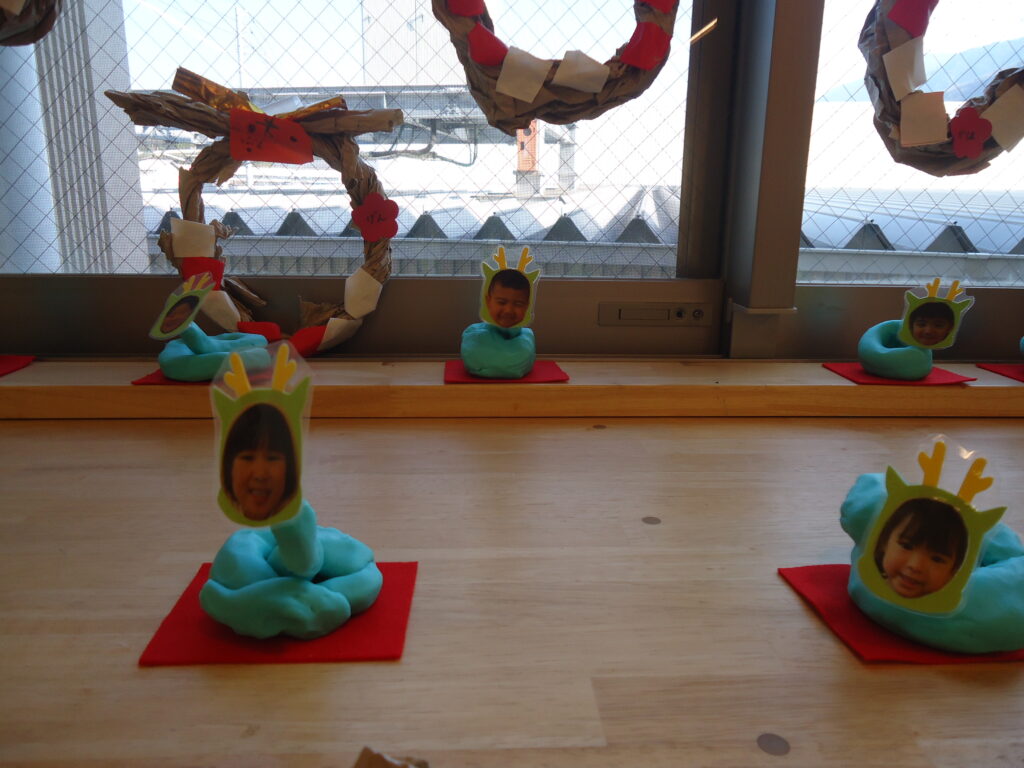 そして2024年の干支は「辰」🐉粘土で体を作り、自分達が辰🐉に変身!!よく似合ってますね(笑)お正月のしめ縄も頑張って作りました。