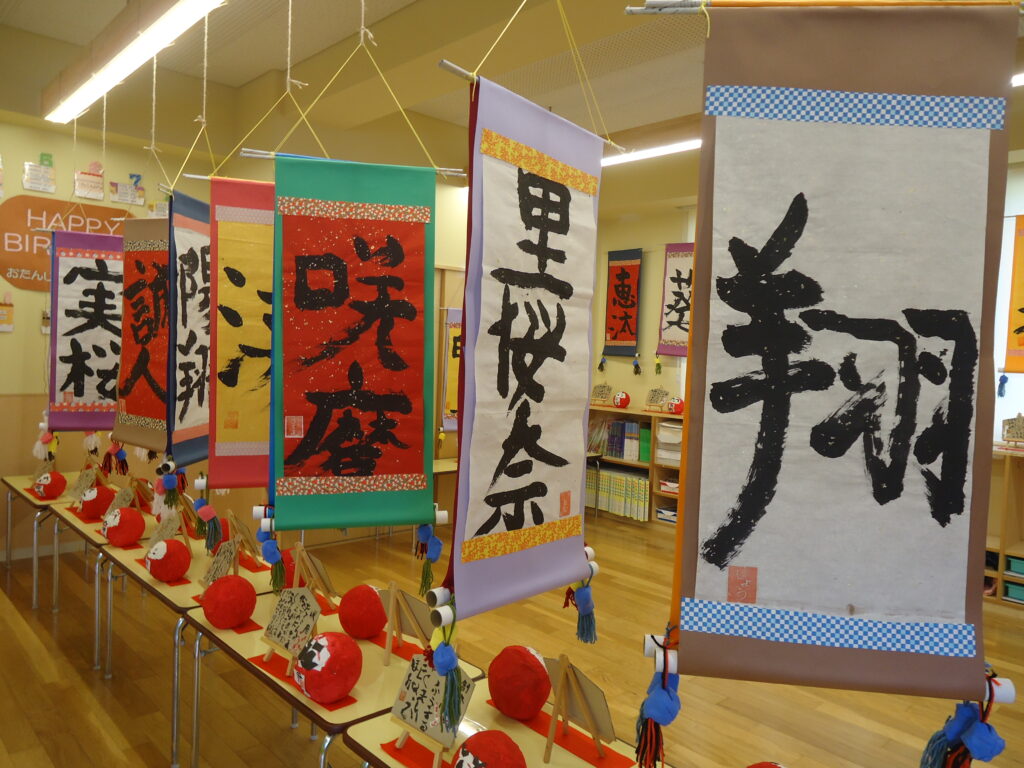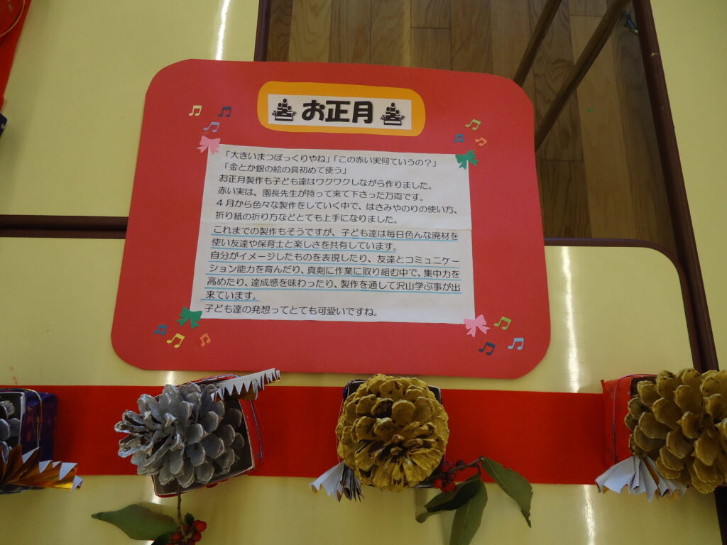 とってもお正月らしく華やかですね✨✨年長組さんの取り組んできた1年間がこのそれぞれの作品に形として表現され、素晴らしいものになっています。