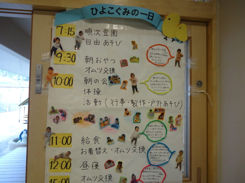 😊ひよこ組さんの1日の流れはこんな感じで過ごしていますよ。(*^▽^*)