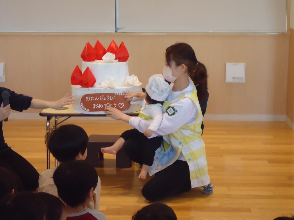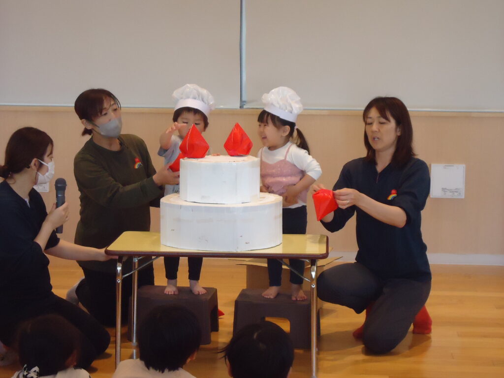 今年度初めてのお誕生日会がありました。今回のお誕生日会では、大きな大きなお誕生日のケーキ🎂をお誕生児のお友だちと一緒に作るようです(*^▽^)さて、どんなケーキ🎂が出来るか楽しみですね。