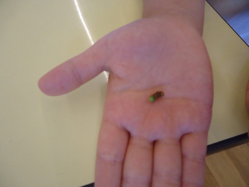 みんなが上手に穴を開けた所で・・・・・最後に、そ~っと梅を瓶に入れ、