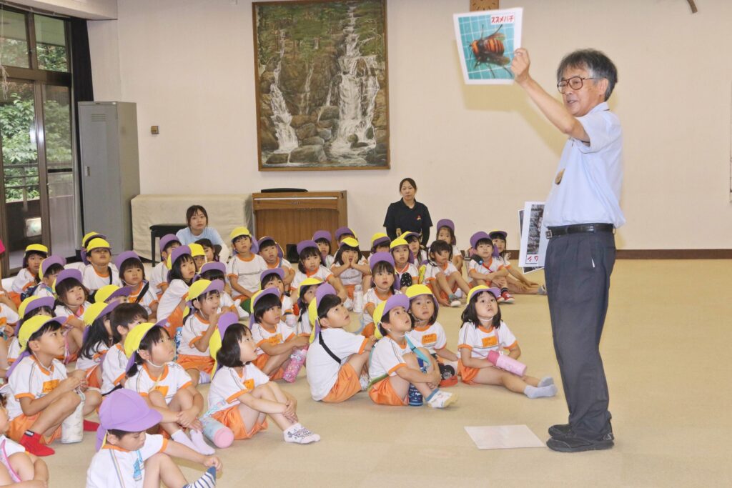 「大きなスズメバチ」やイノシシなどたくさんいるので気を付けてくださいとお話してくださいました。