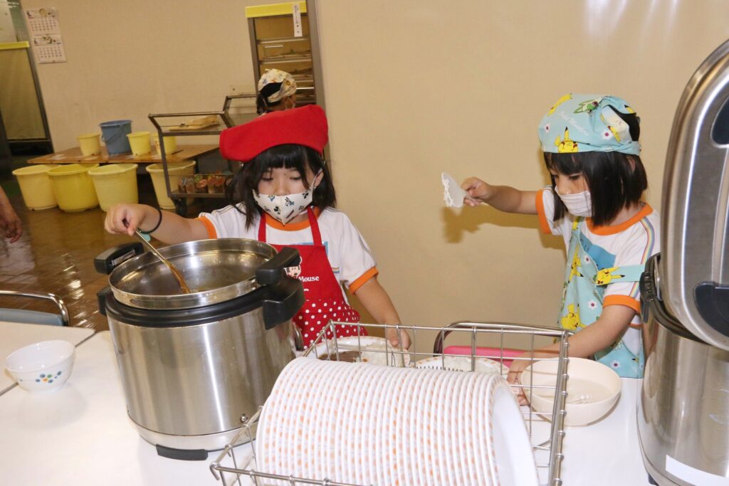 ごはん係は・・・・・夕食のカレーの準備に大忙し・・・・・、ルーやご飯を上手についだり、トレーに乗せたカレーなどを上手に配膳してくれました。