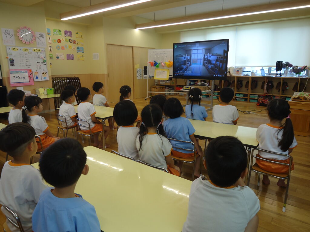 毎年恒例のお泊り保育が今年もやってきました。例年では園にお泊りするのがお決まりでしたが、今年はなんと、三滝少年自然の家へ堀越、第二の3園で行く事に。👏👏初めてお泊りするとこはどんなとこだろう?どんな事をするのかな?・・・・という事で、事前にビデオを見て勉強しました。