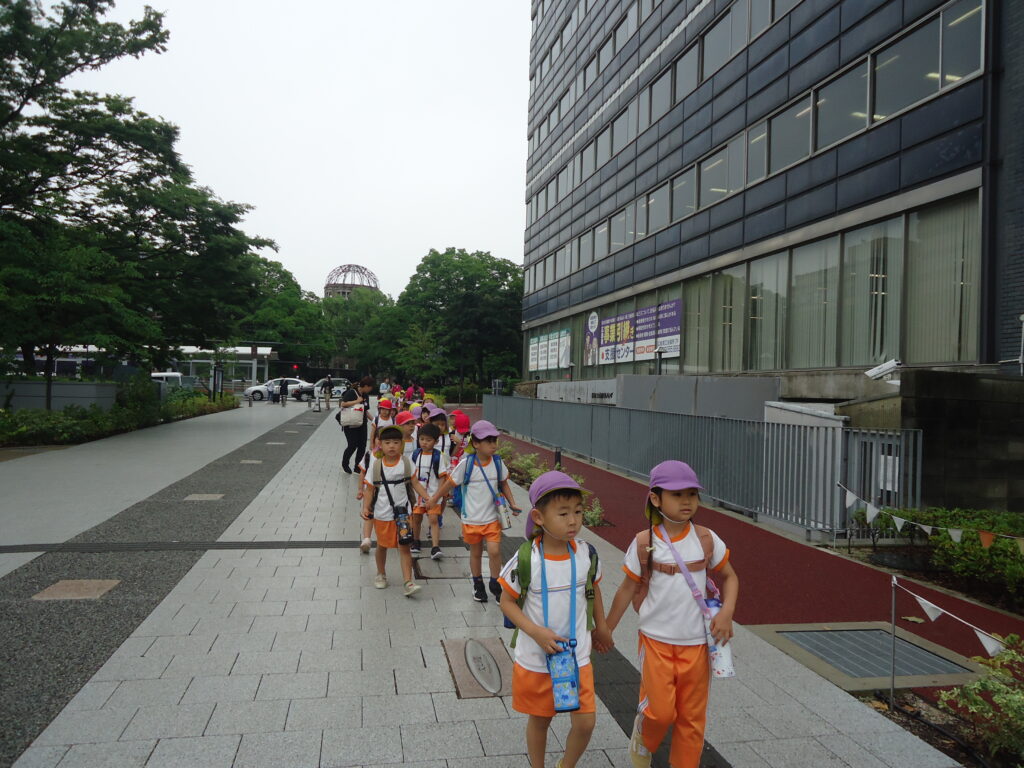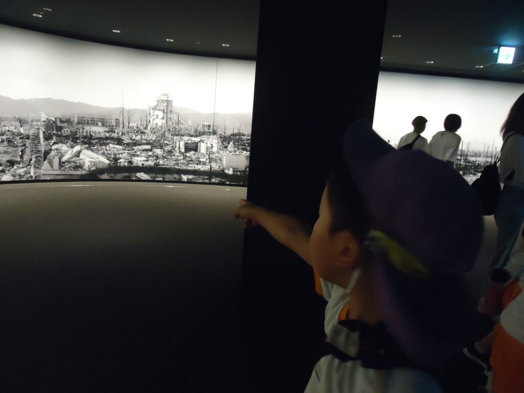 次に訪れた原爆資料館では、園で原爆のことについて、話を聞いていたものの、焼けて変わり果てた広島の街を目の辺りにすると、言葉が出ませんでした・・・・。