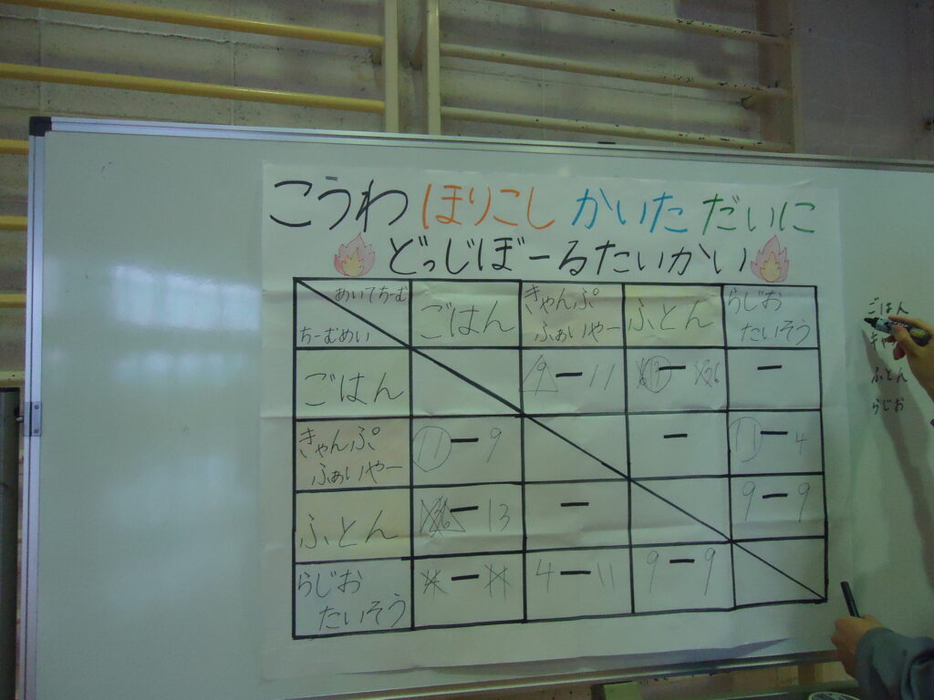 お泊り保育でする係が同じグループになり、総当たり戦で戦いました。勝っても負けても、最後まで一生懸命戦いましたよ!!