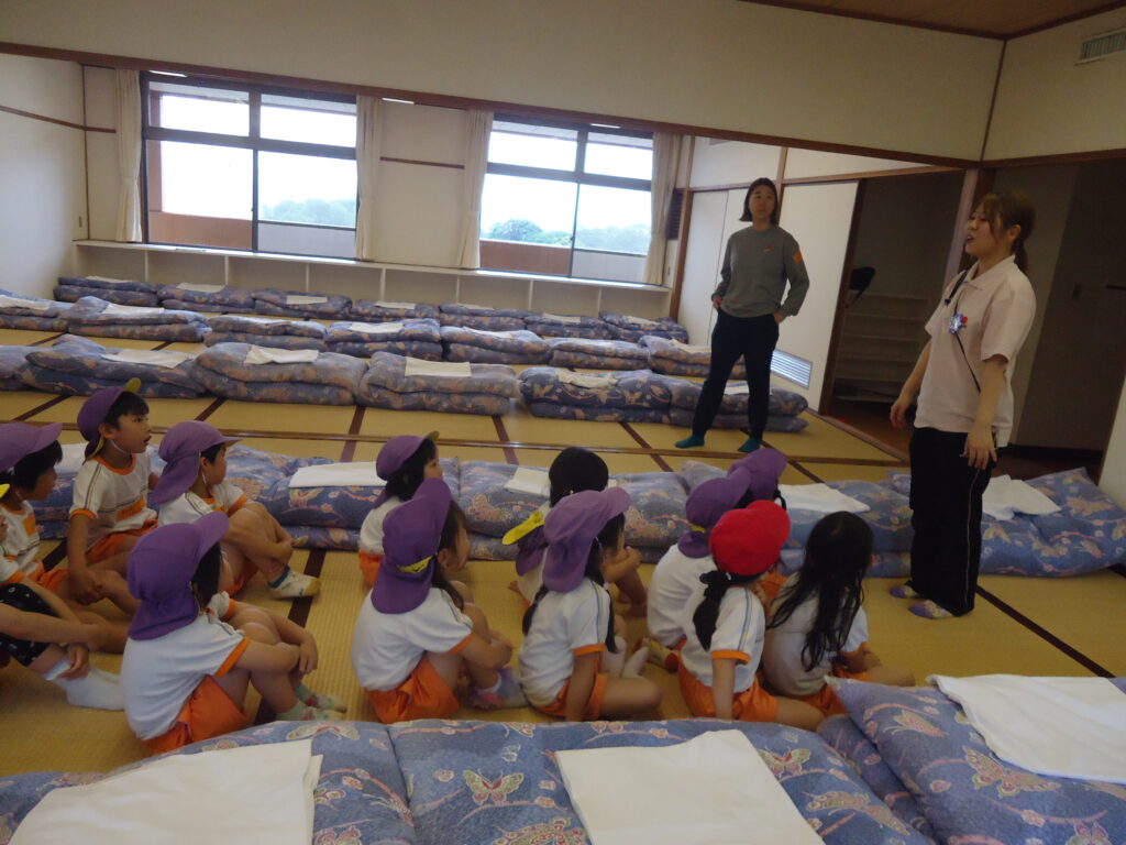 今日1日いっぱい色々な体験が出来た子ども達、初めてお家の方と離れてのお泊りはちょっぴり寂しかったけど、大好きな友だちや先生がいるから大丈夫!とお布団では笑顔を見せてくれました。いい夢みれたかな・・・・・・🌙