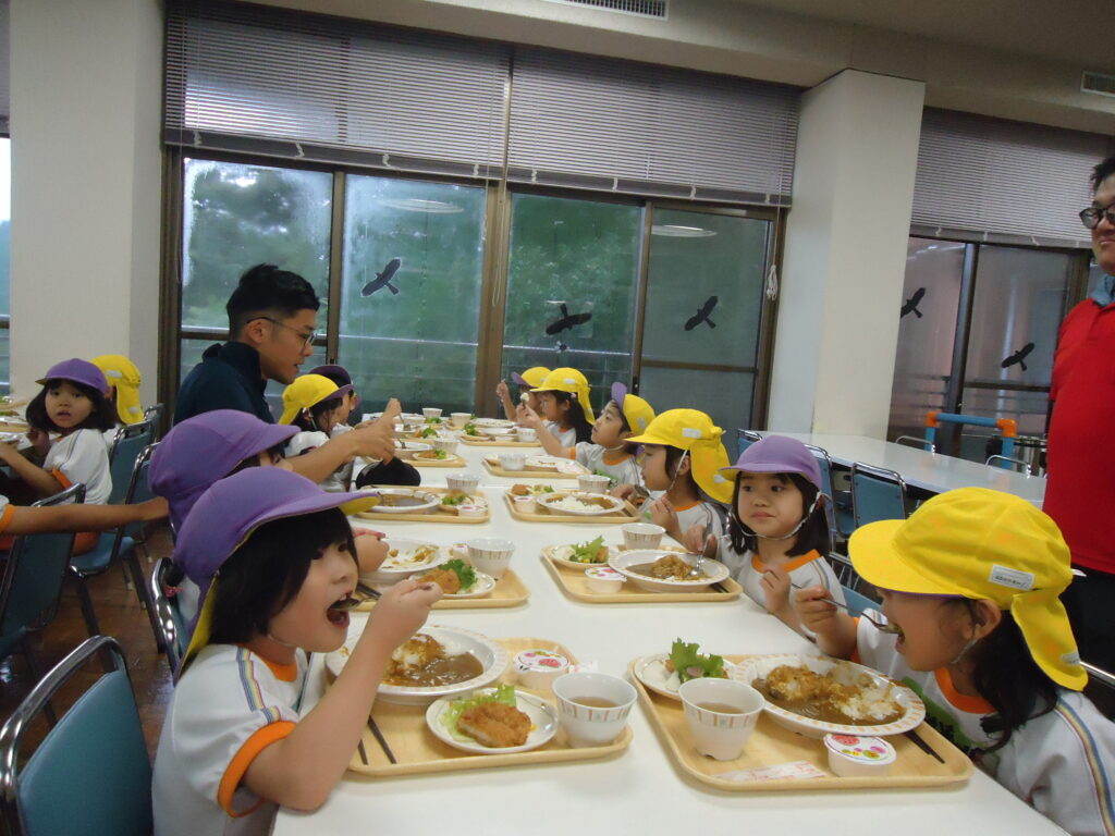 「カレーのお味はどう?」と聞くとみんな声を揃えて「美味し~~~~い💓」 お腹が空いていた子ども達は何回もお代わりしていました(笑)