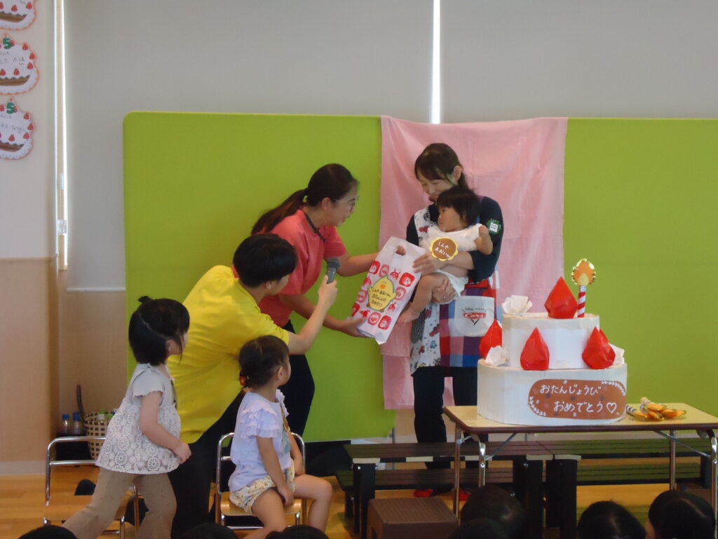 1歳になったお友だちは、たくさんのお客さんの前でちょっと緊張した様子でしたが、泣くこともなく園長先生からプレゼント🎁、大きいお友だちが大丈夫かな・・・・?と心配そうに見守る姿も💓