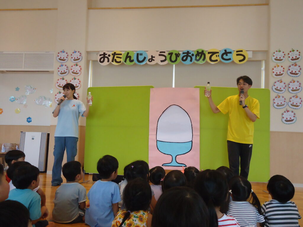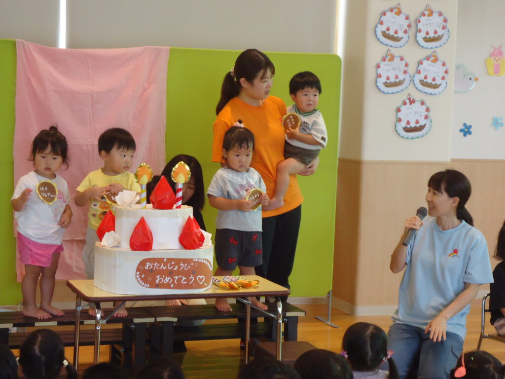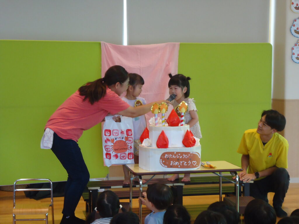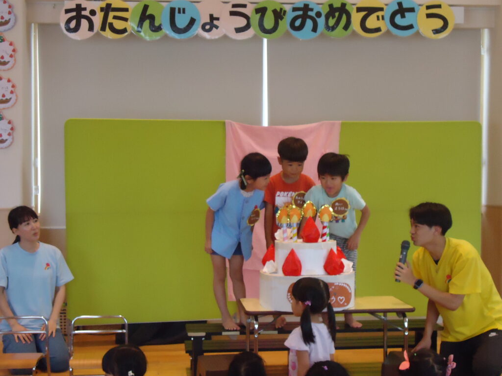 8月26日(月)に8月生まれのお誕生日会がホールで行われました。今月はたくさんのお誕生児のお友だちがいましたよ。🎉