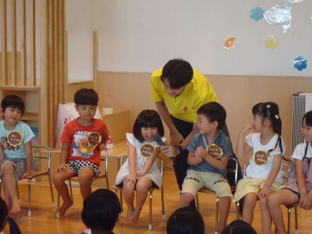 4歳になったお友だちは、園長先生にマイクを向けられると「ありがとう!!」と元気よくお礼が言え、
