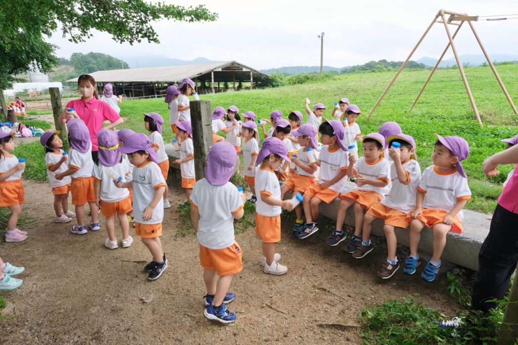 7月14日(金)に幼児組さん全員でバスに乗り,湯来町にある砂谷牧場に遠足に行ってきました。