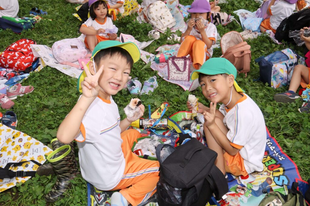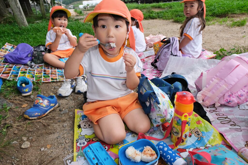 待ちに待ったお弁当タイム🍀たくさん体を動かした後は・・・・・お家の人に作ってもらったおにぎらずを「いただきま~す」