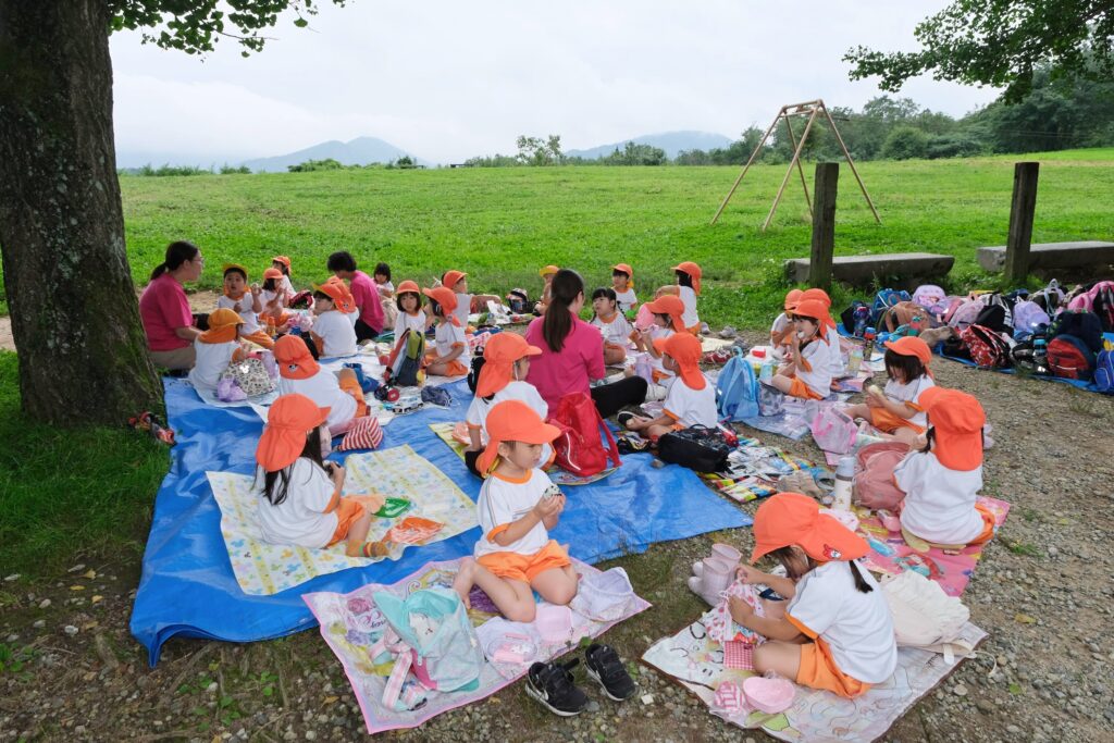 お弁当の後は広い野原で遊具や虫見つけなど、お友だちとしっかり遊び自然を満喫した、楽しい楽しい遠足でした🐄🐐
