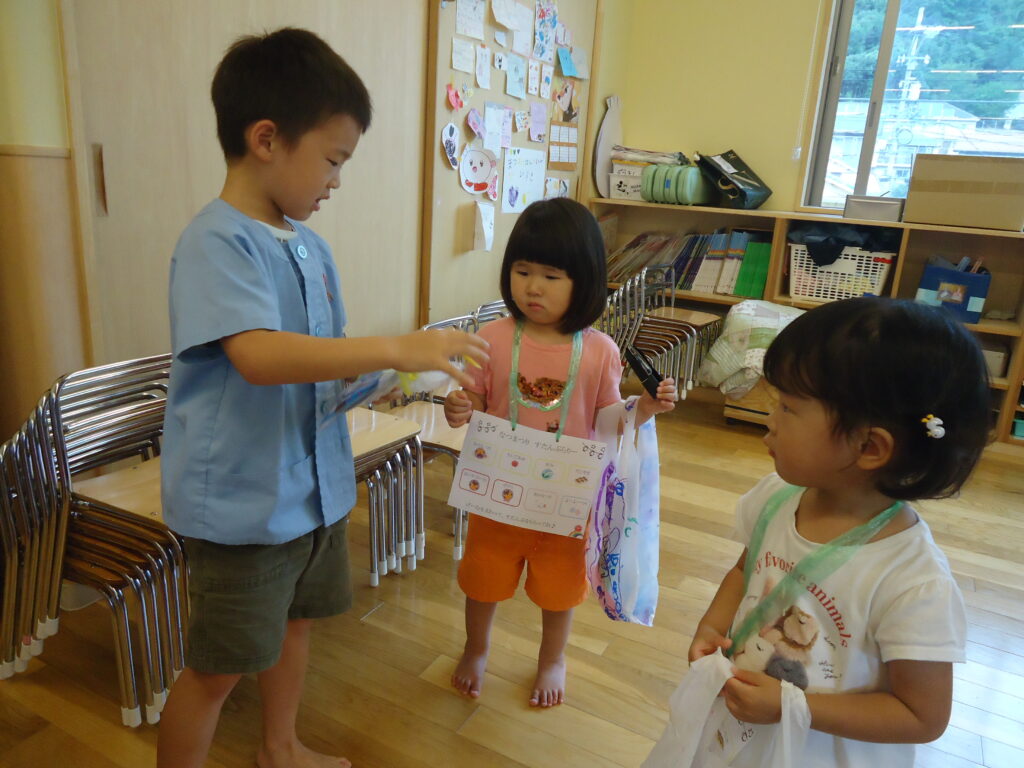 年長のきい組さんが中心となり、8月25日(金)に園内で夏まつりを行いました。幼児組さんが作ったいろいろな楽しいコーナーを