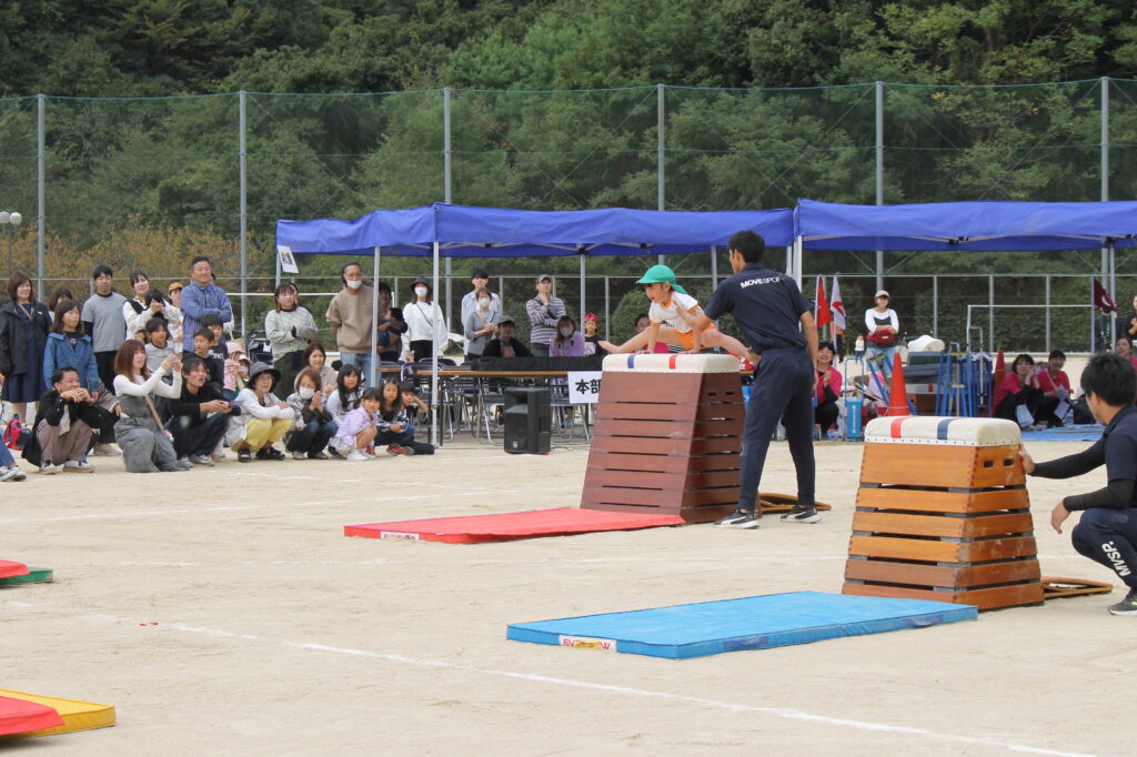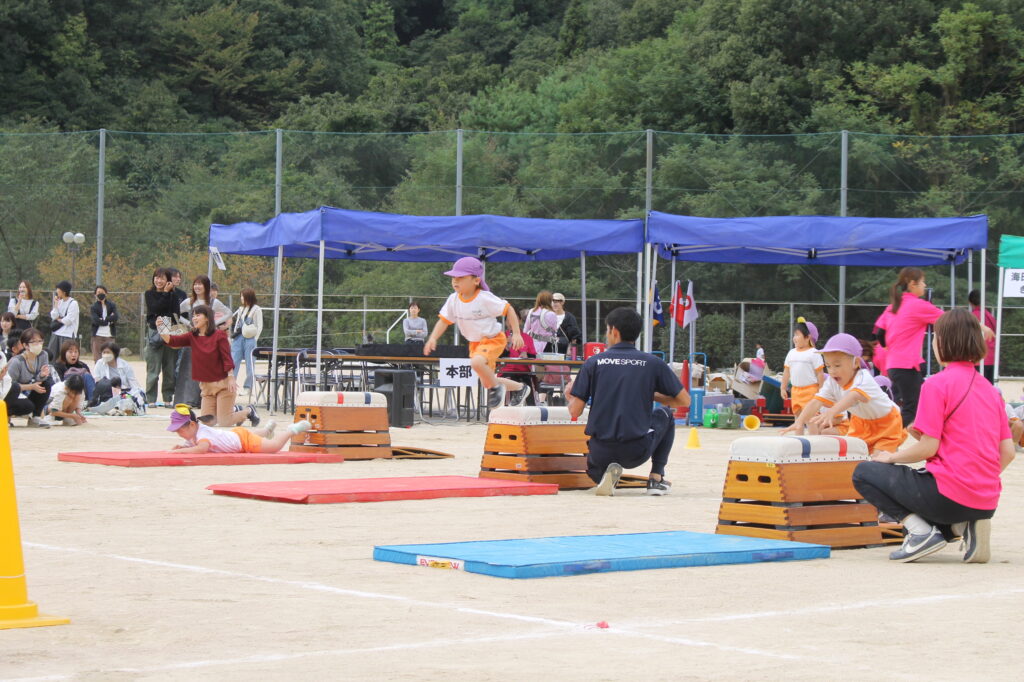 年中組さんは、少しずつできるようになった跳び箱3段やゴム飛び、鉄棒をしました。失敗しても、転んでもゴール目指して頑張りましたよ👏👏