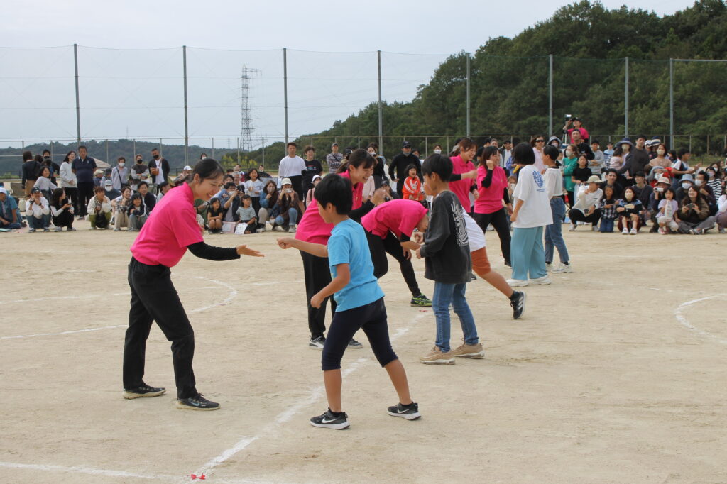 そして、「いざ、対決ジャンケンポン!」・・・先生と小学生がジャンケンし、勝ったらおみやげの所まで走り抜きゴール!!久しぶりに会う先生達に照れながらも、とってもうれしそうでした。(*^-^*)