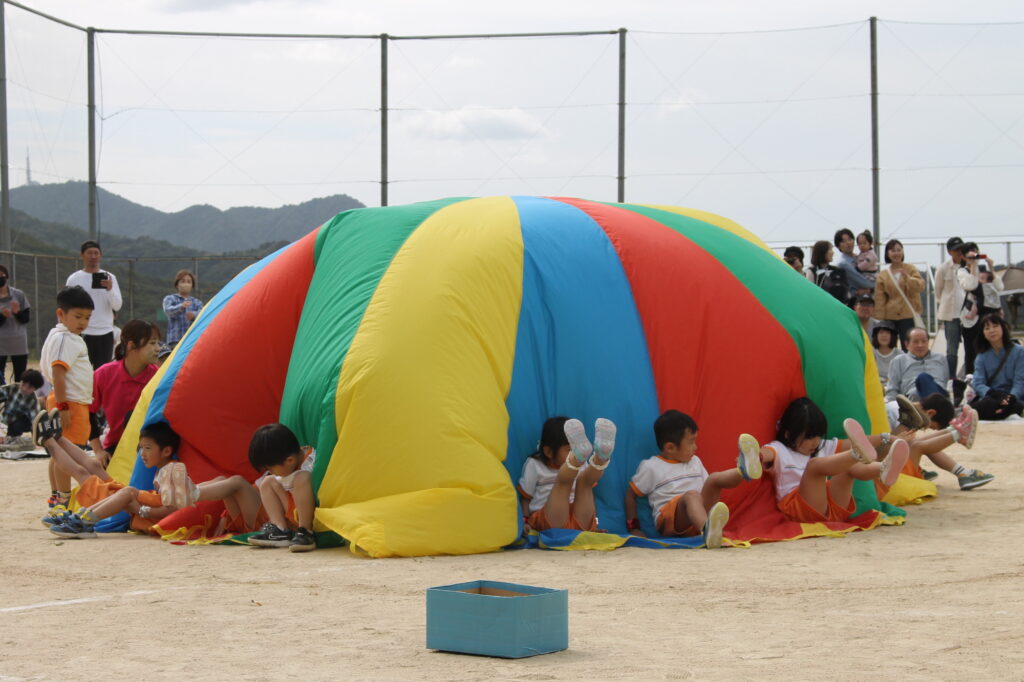 年中組さんによるバルーンはみんなの息を合わせながら、いっぱいいっぱい練習してきました。本番はかっこいいところも見てもらうんだと、大きな声で「かにさん、かにさん」と横歩きをしたり、「ゴシゴシ、ゴシゴシ」と言いながらしっかり横に手を振って友だちと呼吸を合わせながら頑張っていました!!👏👏