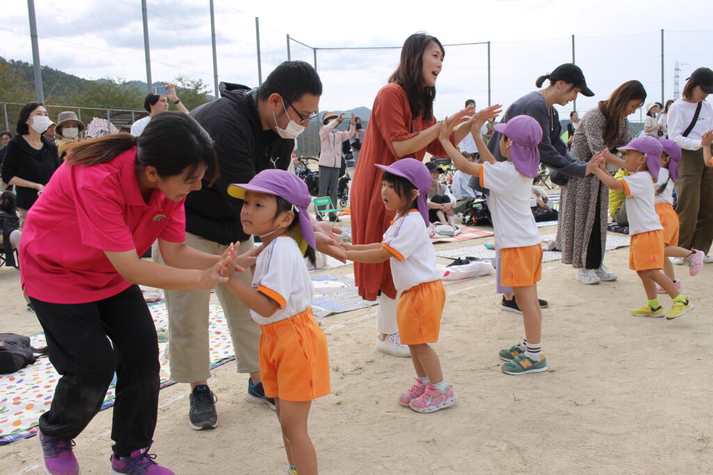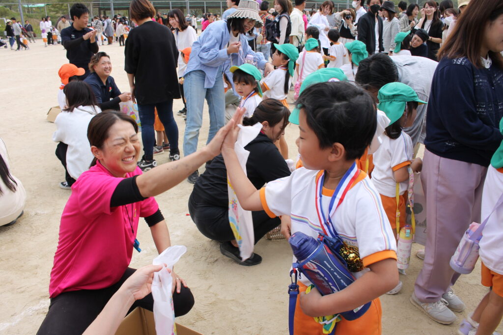 閉会式後は大好きな先生から「よく頑張ったね!」と金メダルを首に掛けてもらい、ハイタッチ✋お家の人にもたくさん褒めてもらって満面の笑みの子どもたちでした。