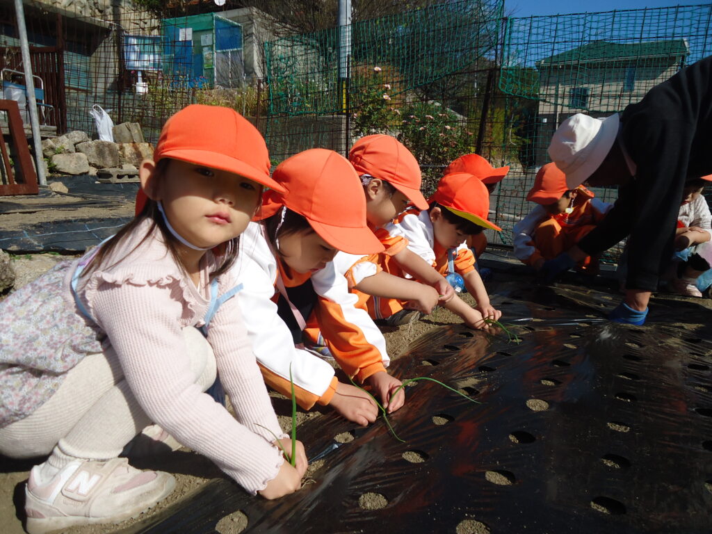 11月15日(水)七五三詣りをした後、近くの畑に玉ねぎを植えにいきました。