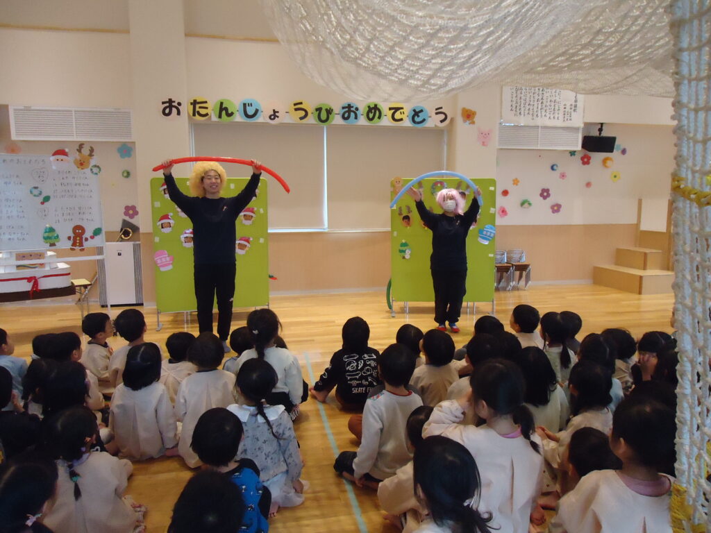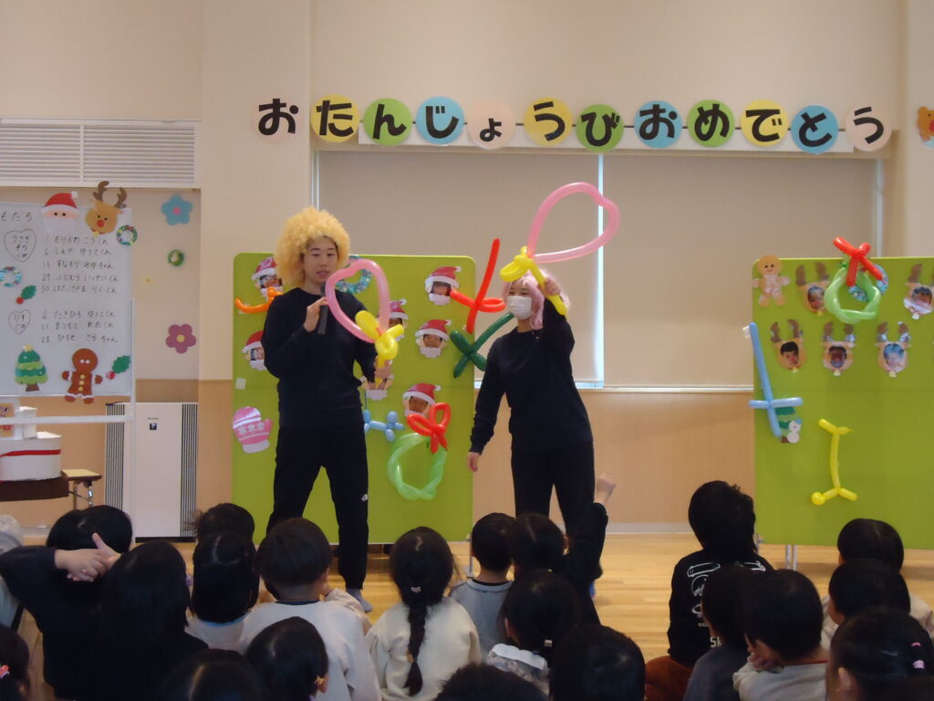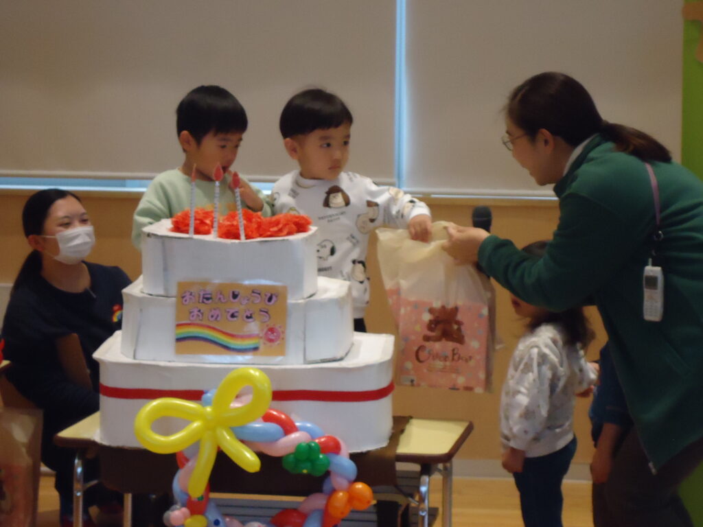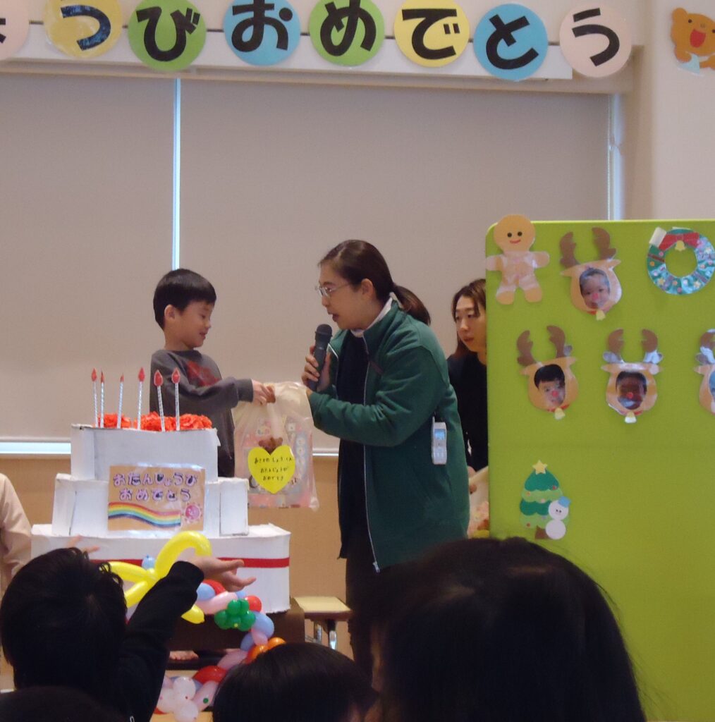 12月5日にお誕生日会が行われました。今月はたくさんのお誕生児がいましたよ(*^▽^*)まずは・・・先生達からのプレゼント🎁