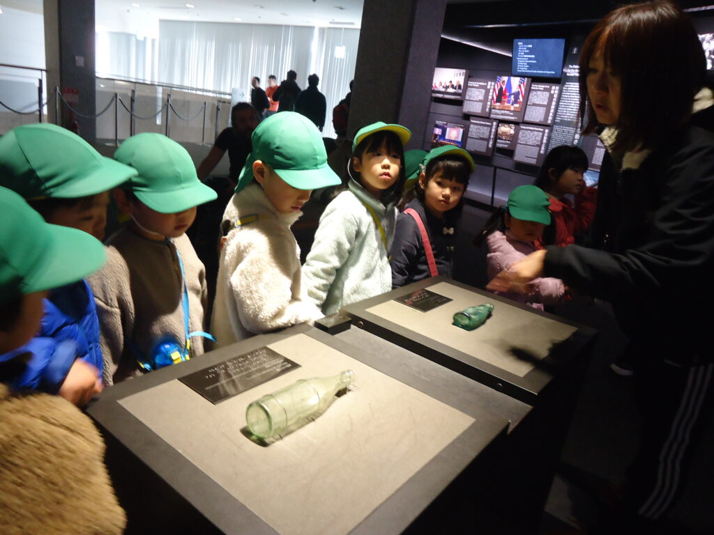 沢山の展示品に爆弾の怖さを感じ、「戦争は怖い」「戦争はしたらだめよね」子ども達からの素直な声が聞けました。