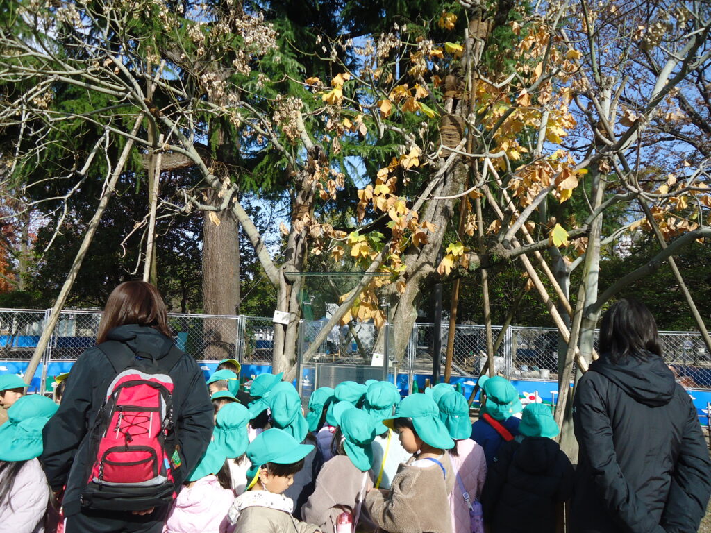 アオギリさんの木へ。夏前に行ったアオギリさんの木とは違い、随分葉っぱは少なくなっていましたが、自然と出てくる「アオギリのうた」をみんなで熱唱🎵近くにいた修学旅行生さんたちが拍手👏をくれました。