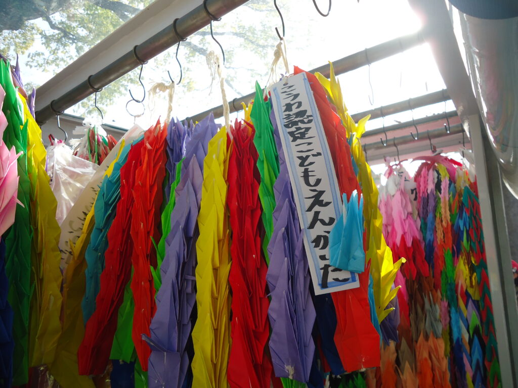 全国から届けられた千羽鶴の中にこうわの千羽鶴も捧げる事ができました。世界がいつまでも平和でありますように・・・・とみんなで手を合わせお祈りし、平和公園を後にしました。