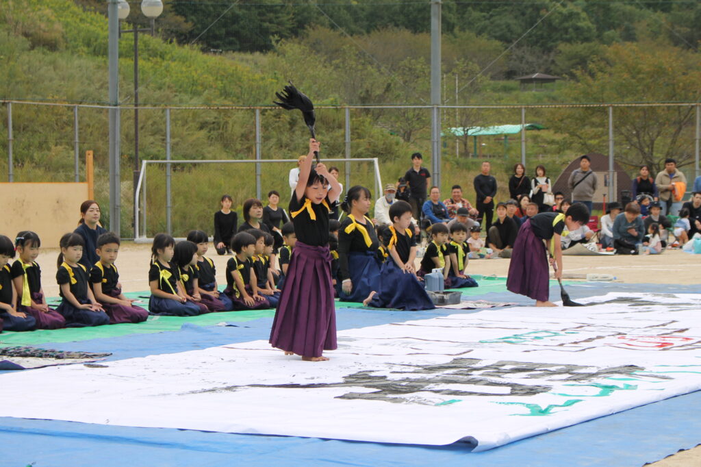 書道パフォーマンスで書いた文字や国旗の事を思い出したきい組さん。