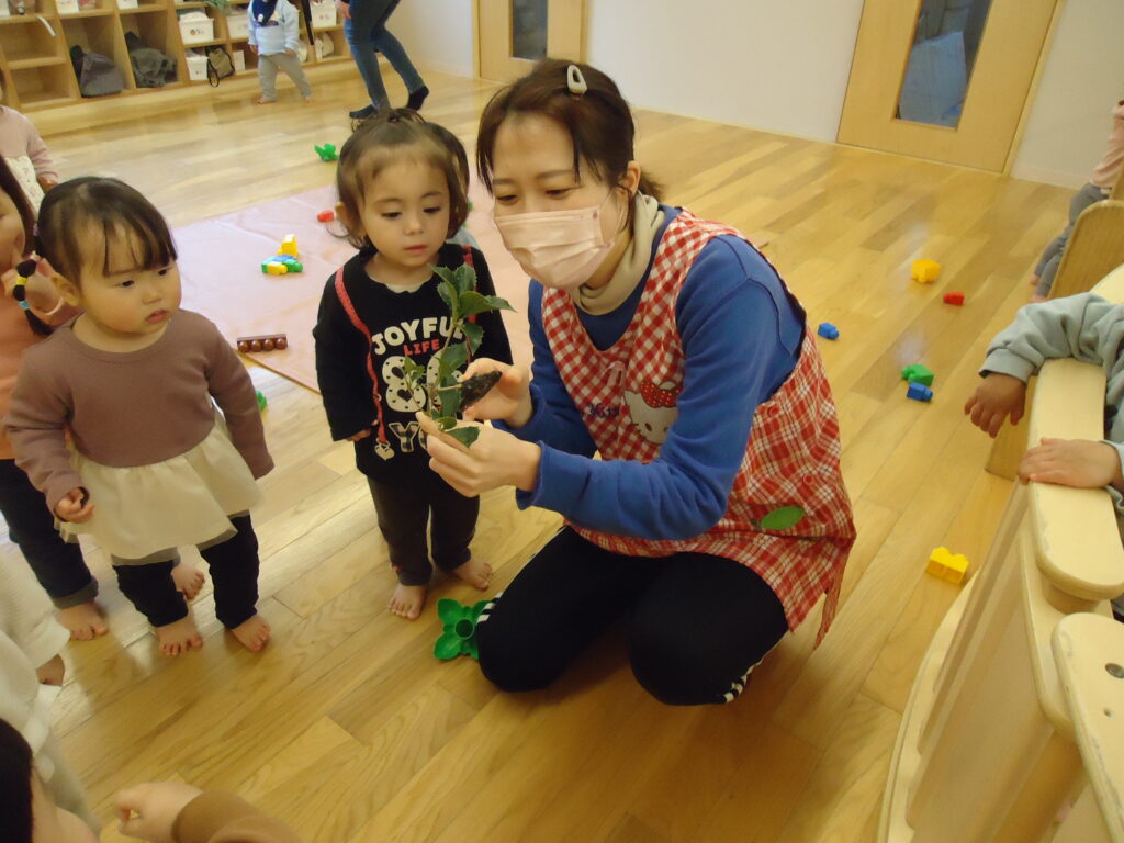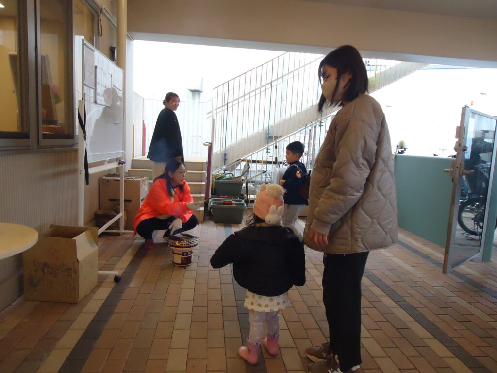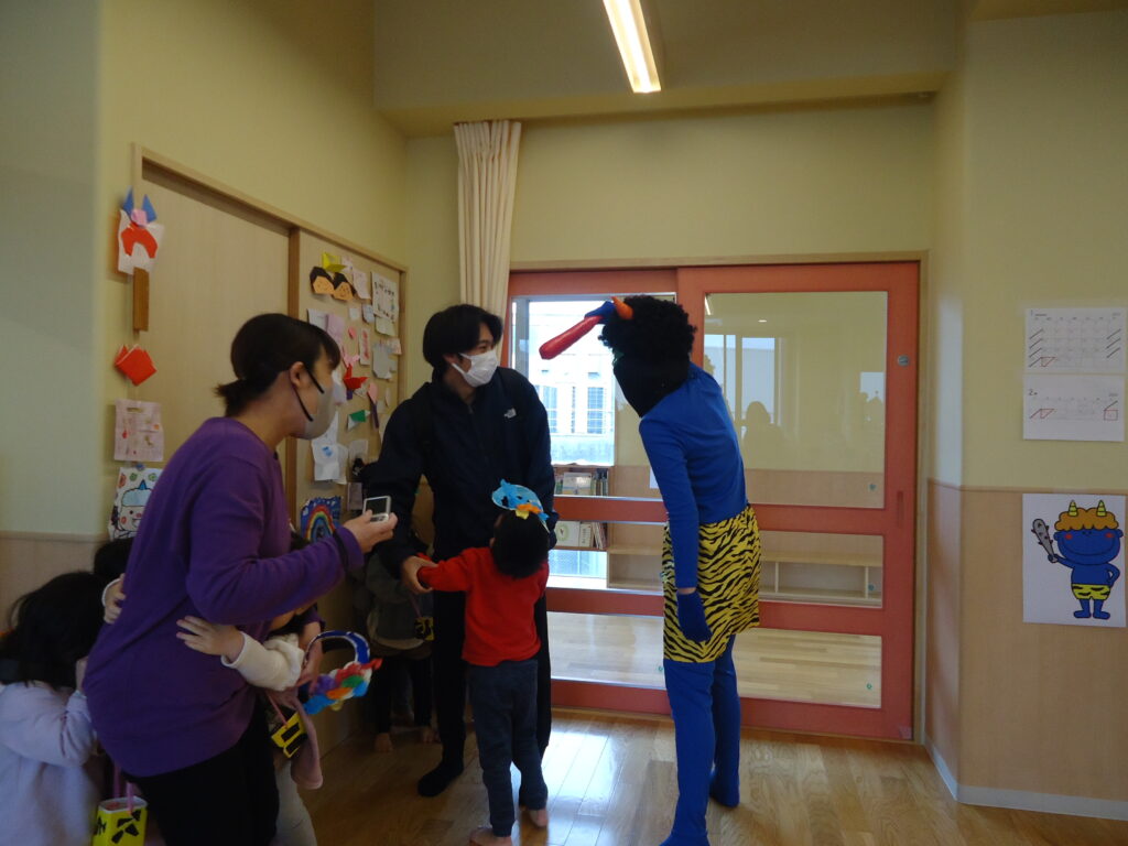 1歳児クラスは・・・・怖くて先生にしがみついて離れませんでしたが、鬼から、ハイタッチを求められると、泣きながらも手を出し頑張ってハイタッチ!!👏👏👏