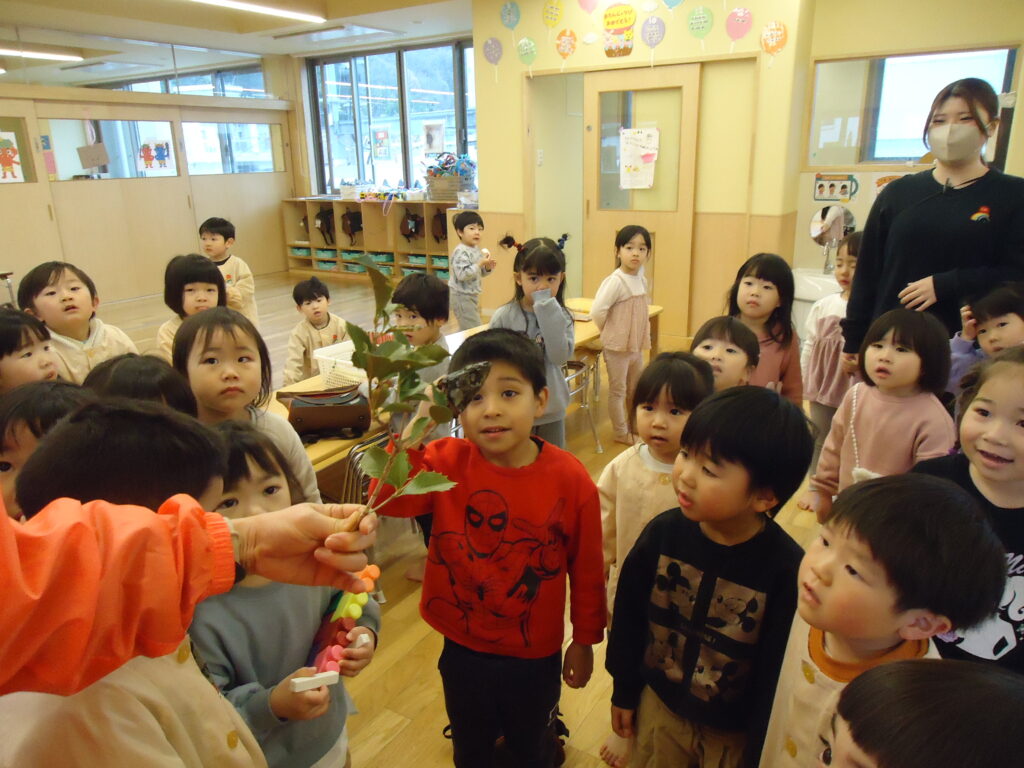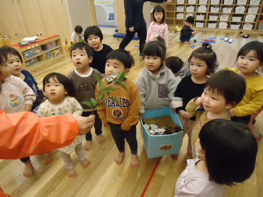 いわしの煙や匂いが苦手、柊のチクチクも苦手だということを知ると、早速、年中組のあか組さんが、いわしを買いに行ってくれる事に。