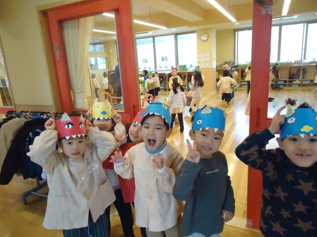 1月に赤鬼と青鬼から手紙が来て、みんなはビックリ!でもこころの鬼を考えたり、2月2日の節分会までに、鬼が来ないように作戦を考えたりしました。