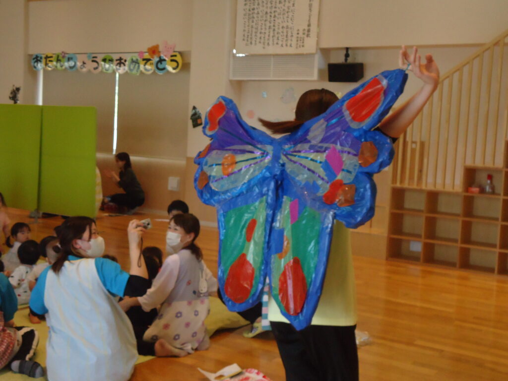 最後は綺麗なちょうちょになってみんなの所へ・・・・・・🦋~~🎵あおむしの歌を歌いながら、みんなで拍手して終わりました👏👏