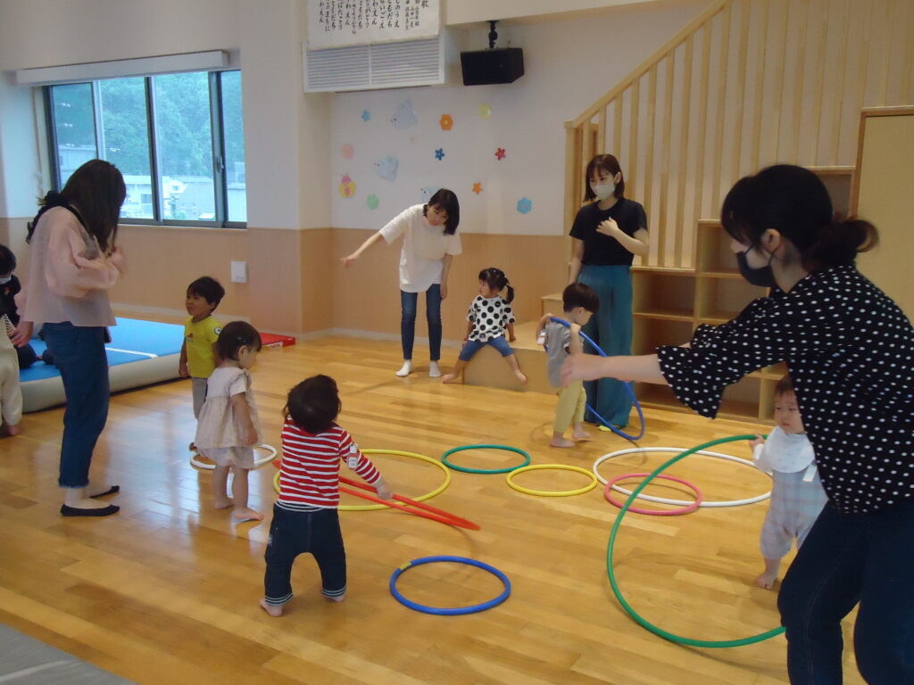 5月28日(火)に予約制の園庭開放「おひさまくらぶ」があり、たくさんの方に来て頂きました。まずはみんなでごあいさつ。(*^▽^*)