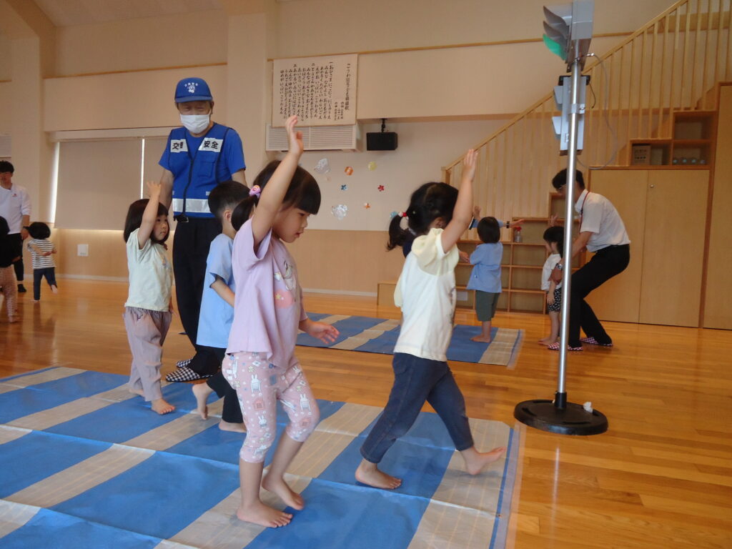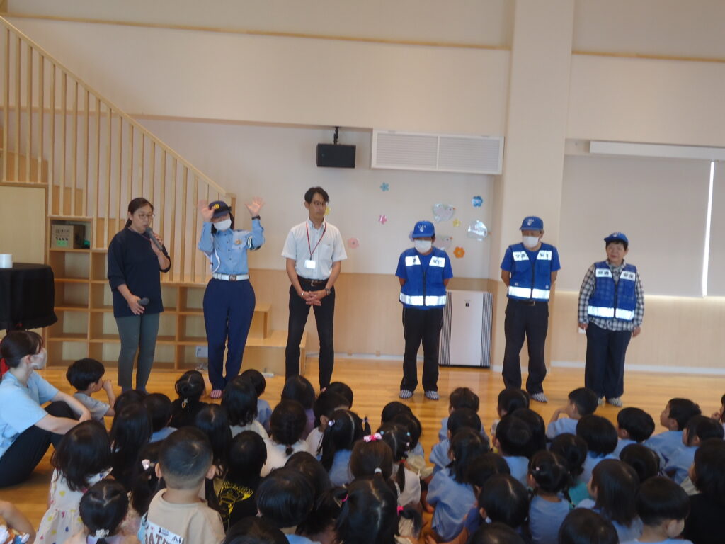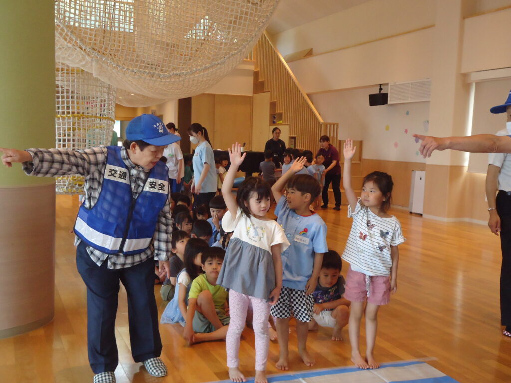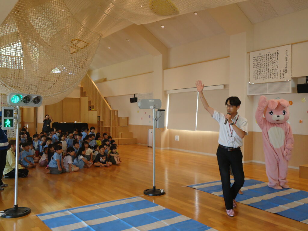 6月7日(金)に幼児組さんを中心にホールで交通安全教室がありました。