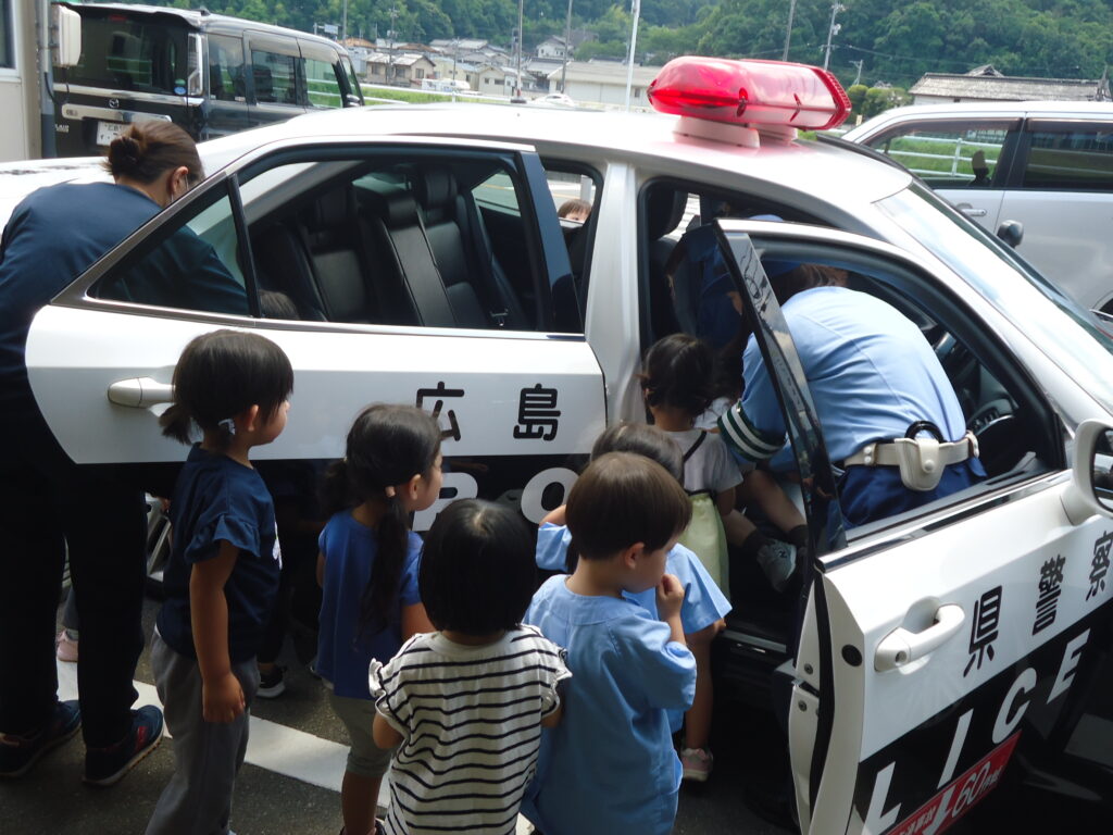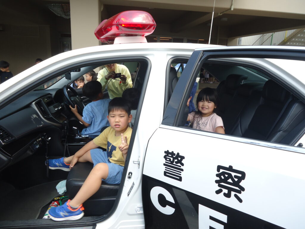 練習の後はみんなでパトカーに乗せてもらったり、説明してもらうなど、普段なかなか近くで見れないパトカーに大興奮の子ども達でした。