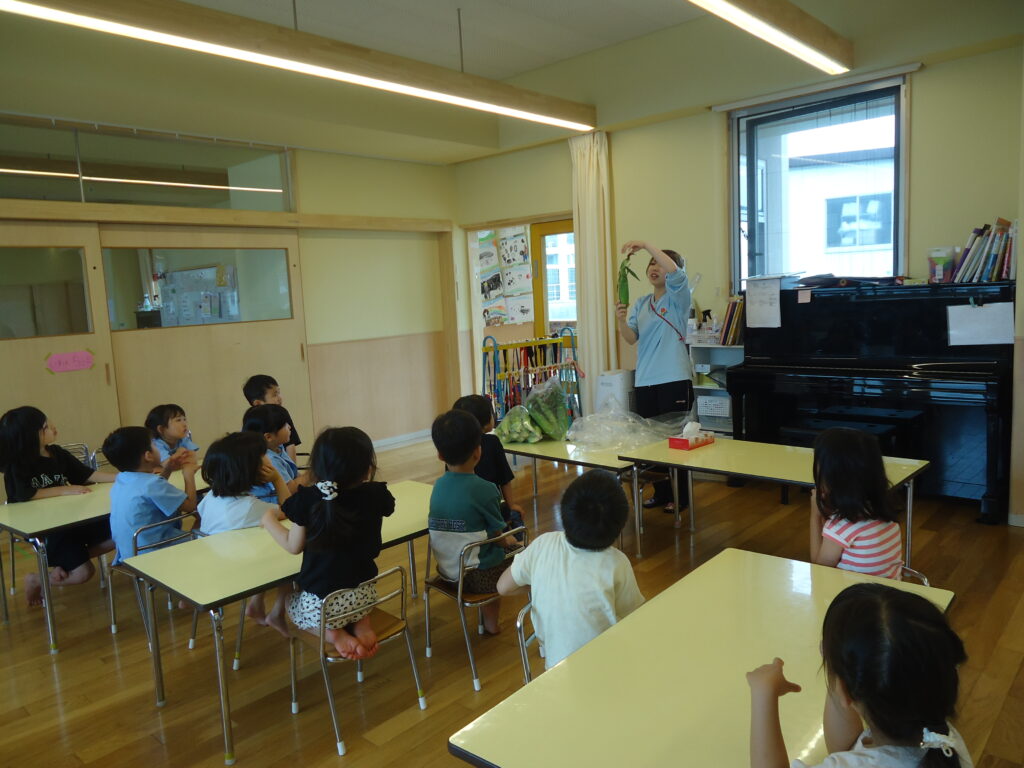 最後はみんなでむいて綺麗になったとうもろこしを給食先生に「お願いします!」と渡すと、給食先生は「ありがとう!!💓」とこの笑顔(*^▽^*)「明日のおやつにとうもろこしが出るから楽しみにしていてね💓」と言われ、とってもうれしそうでした。
