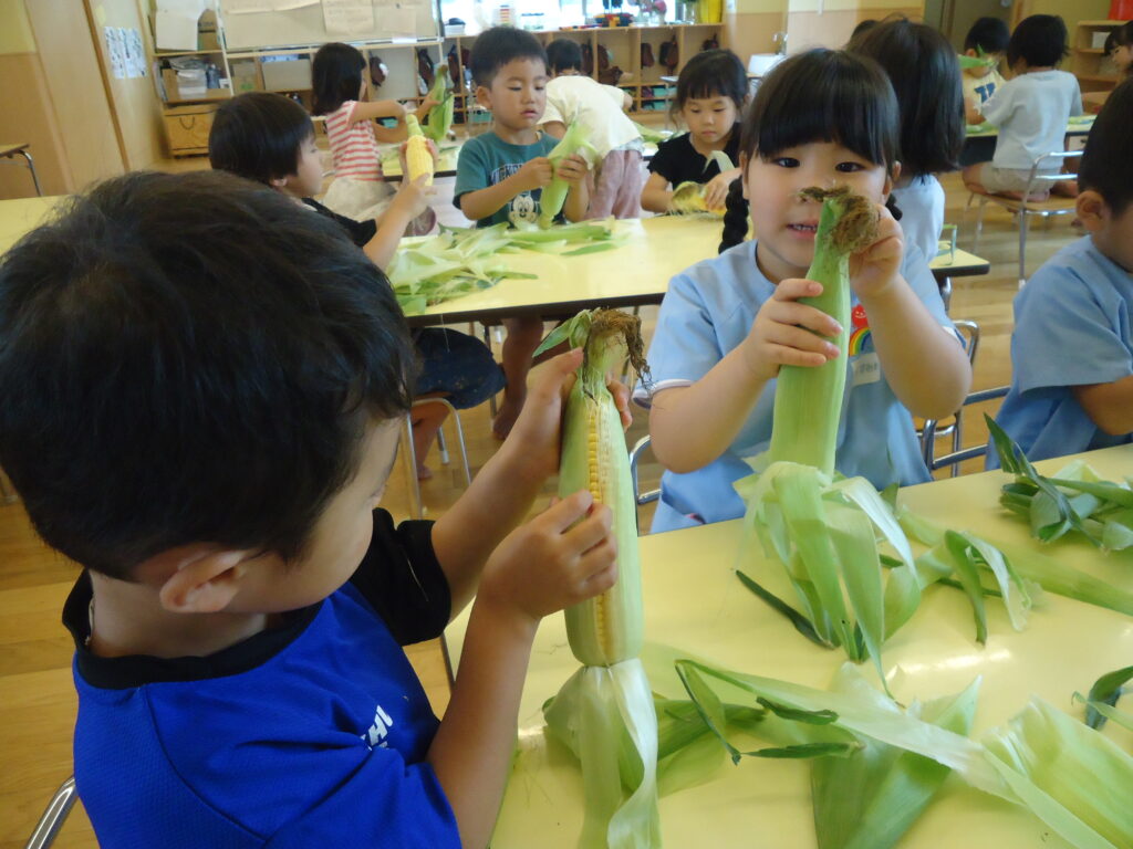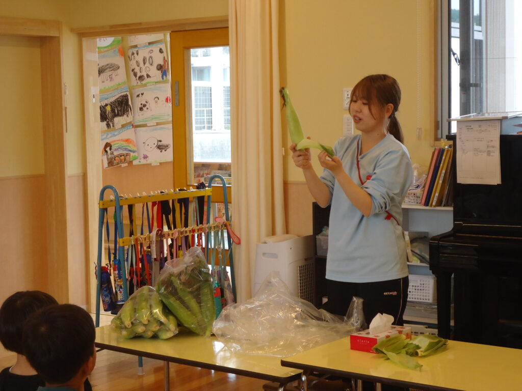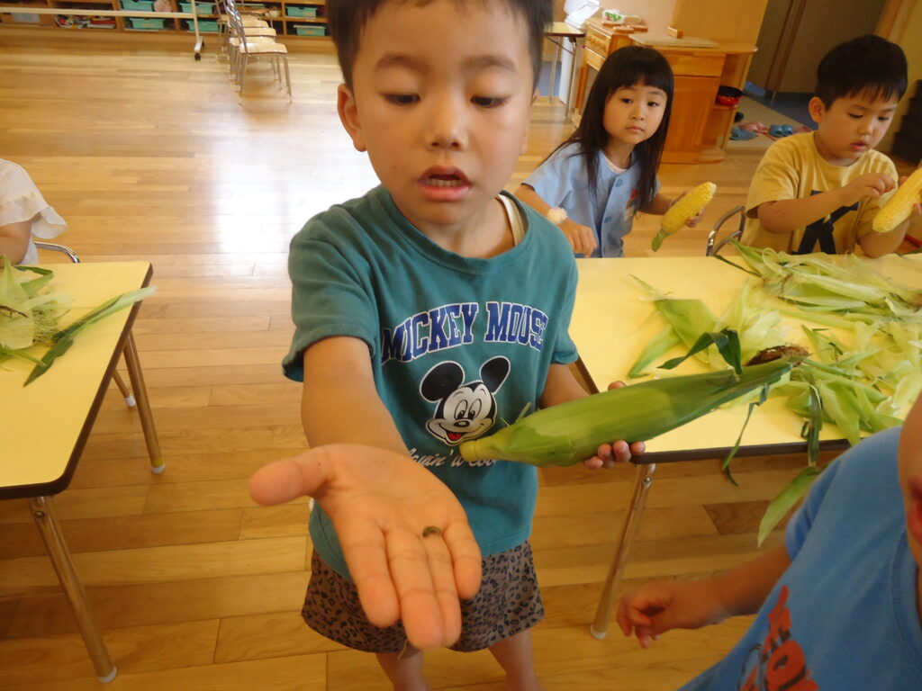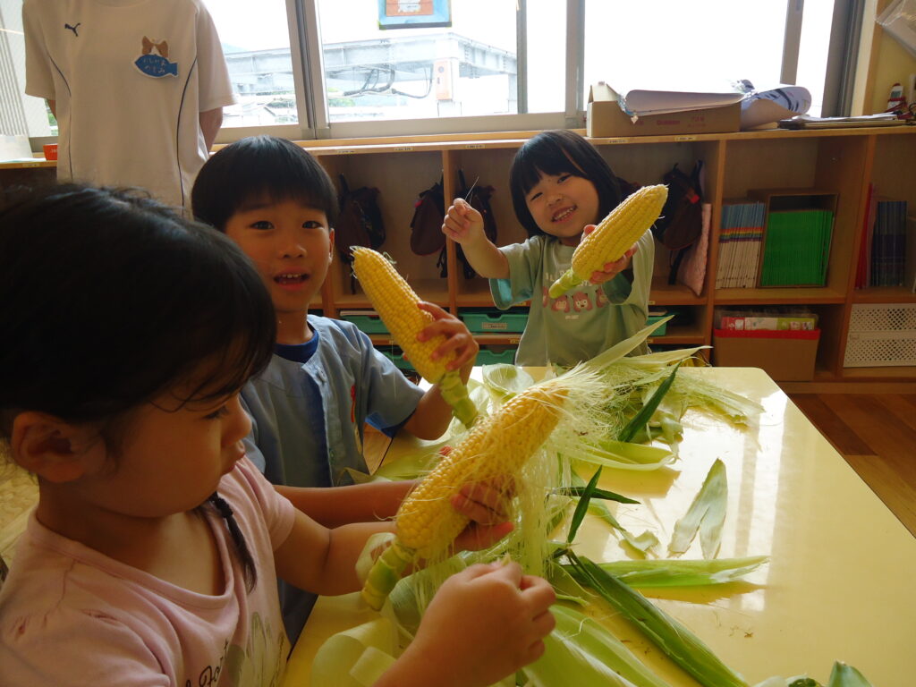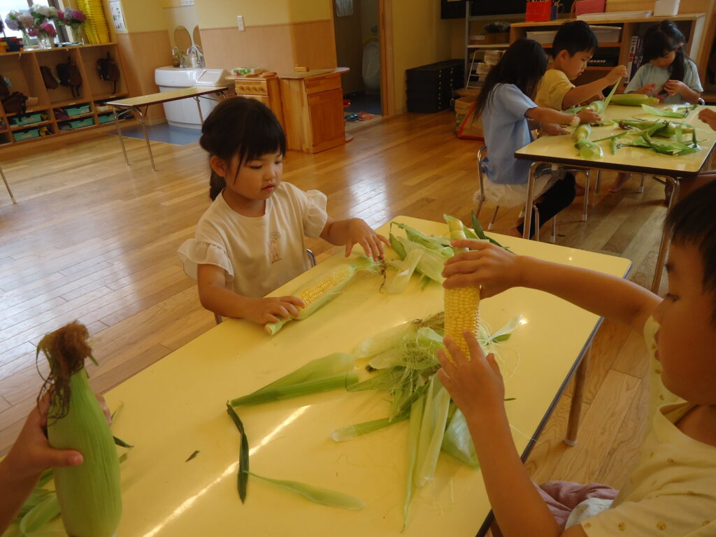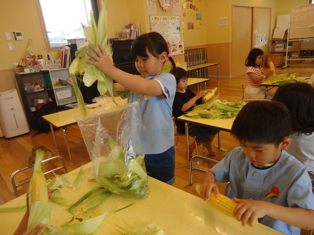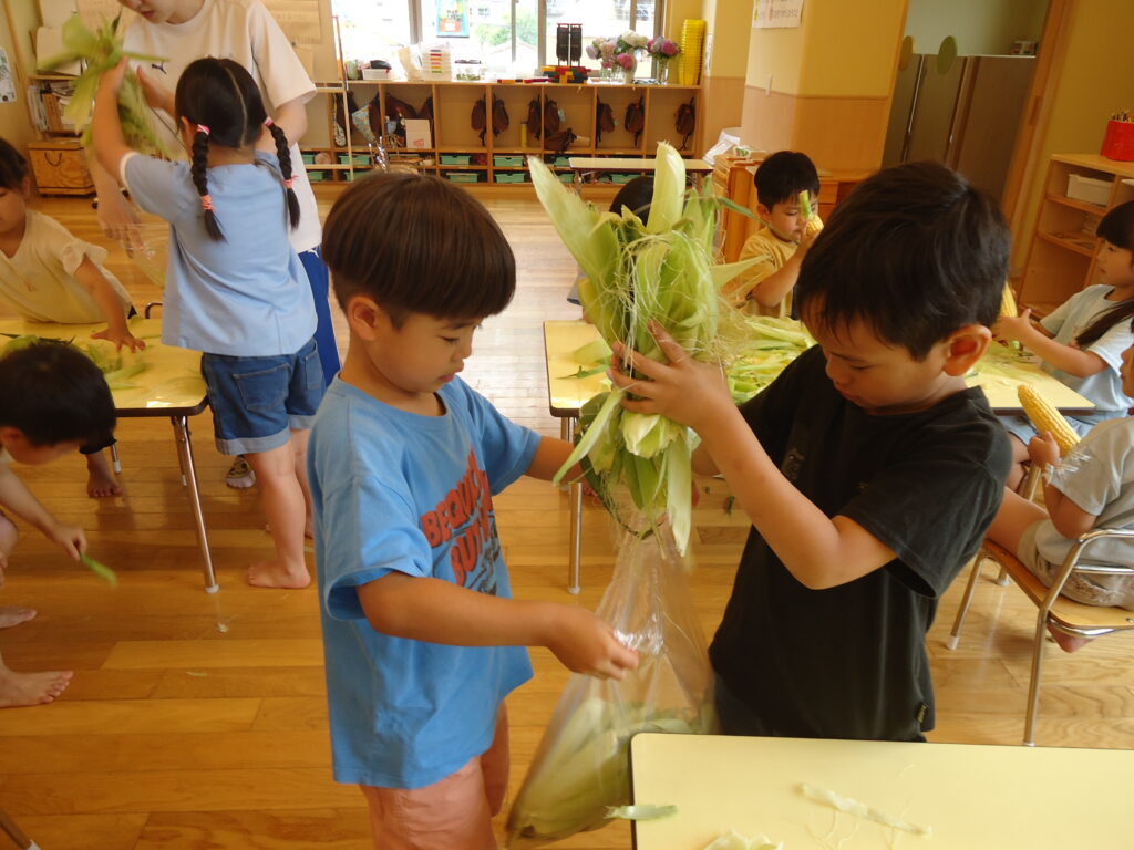 「とうもろこしの皮むきしたい!!」と喜んで引き受けてくれました。👦👧